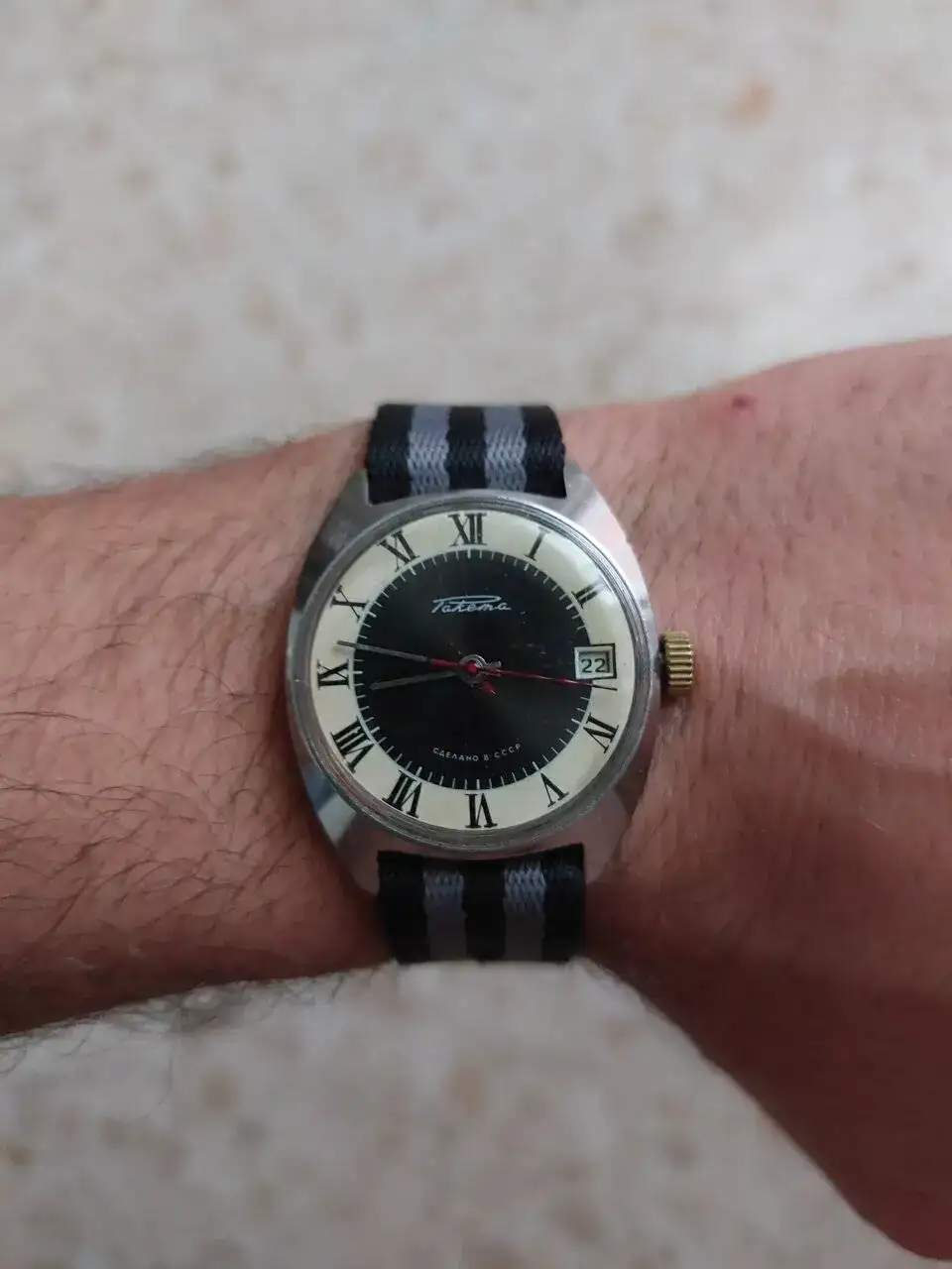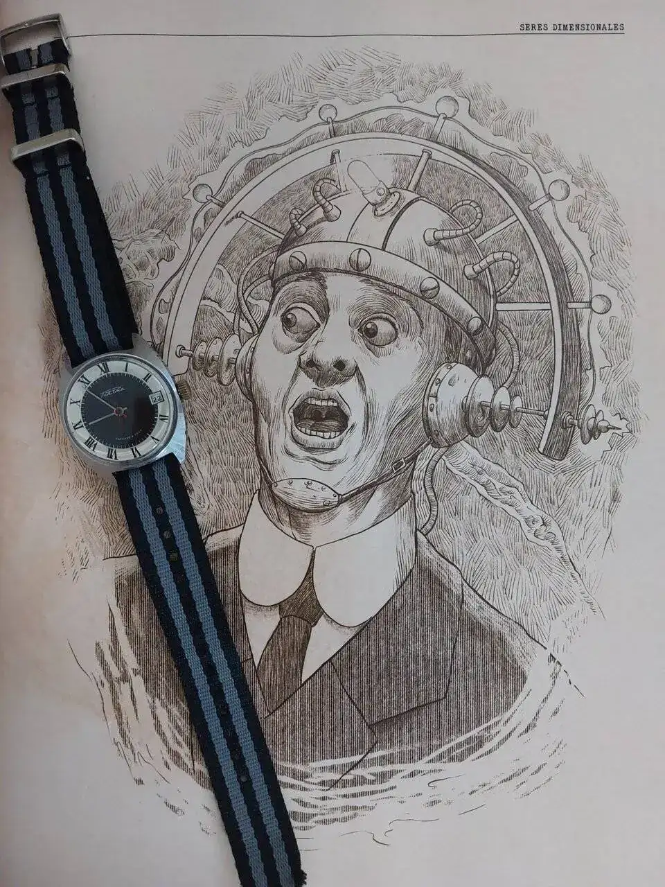 Y aquí tenéis una foto de un señor raro flipando con el reloj:
