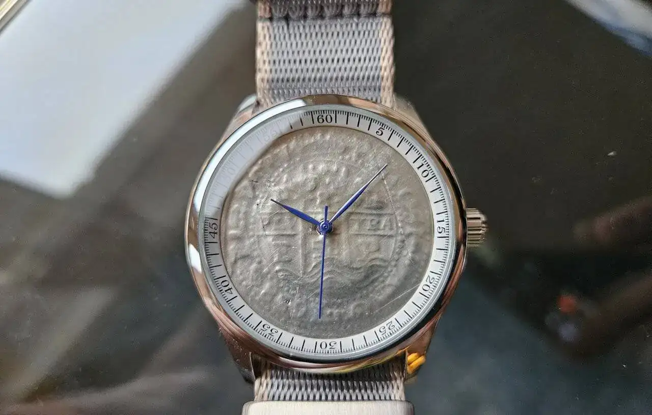También viene con cristal de zafiro y capa antirreflectante. Otra característica que me gusta es el fondo que va cerrado pero con un grabado en el que se explica la historia de la moneda.La correa es, según dicen ellos, de cuero antiguo restaurado (restored antique leather). No soy experto en correas y no sé qué opináis vosotros pero esta característica me sorprende bastante en este rango de precios ¿estaré entendiéndolo yo mal? 🤔