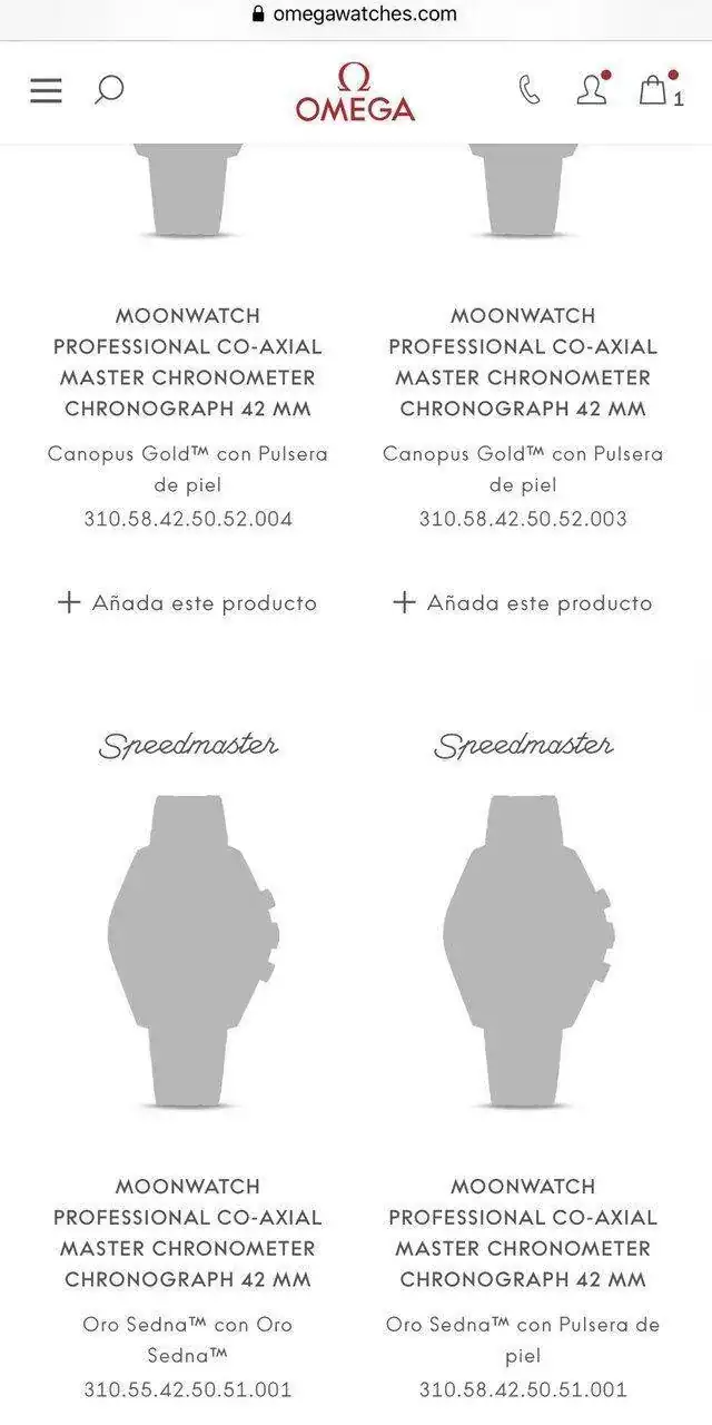 Como veis no tienen imagen ni nada y serian Moonwatch de Oro Sedna (rosa) y Canopus (blanco).