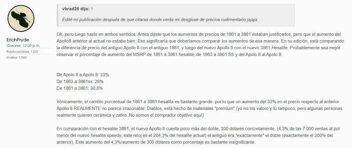 Por cierto @Nicolamilton , estaría bien que rescatases también los comentarios de OF donde comparan los incrementos de precios porcentualmente hablando cuando hicieron el cambio entre 1861 y 3861 estandar.