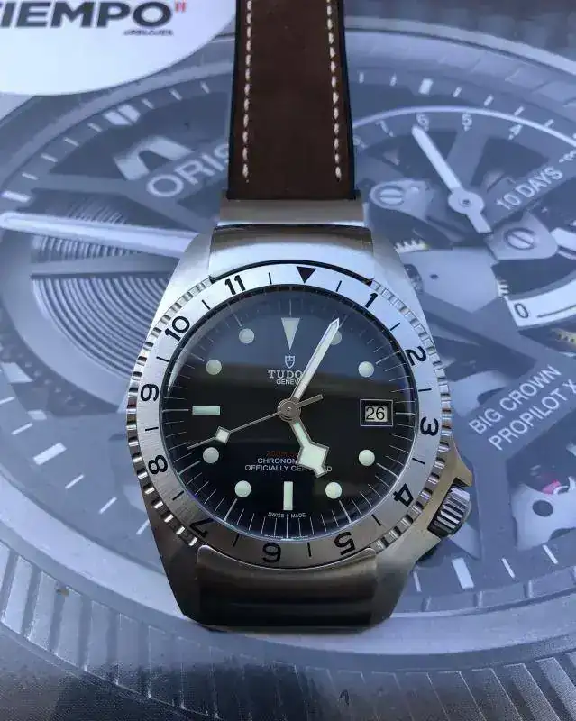 . El caso es que, quizá por eso, me da que no acaba de "rematar la faena": es un diver, al que le ponen bisel, sin luminoso y de doce horas, en lugar de 60 minutos; le cascan un estupendo bloqueo al bisel... que hacen unidireccional; una correa de cuero "basta", supongo que para contentar a los americanos, que son muy amigos de esas cosas... con caucho por el otro lado... Puesto espero que quede bien, porque da la sensación de un lug-to-lug larguísimo... vamos, que tiene muchas cosas interesantes y otras... no tanto. Por supuesto, no es a mí a quien tiene que convencer y a su dueño parece que sí lo ha hecho