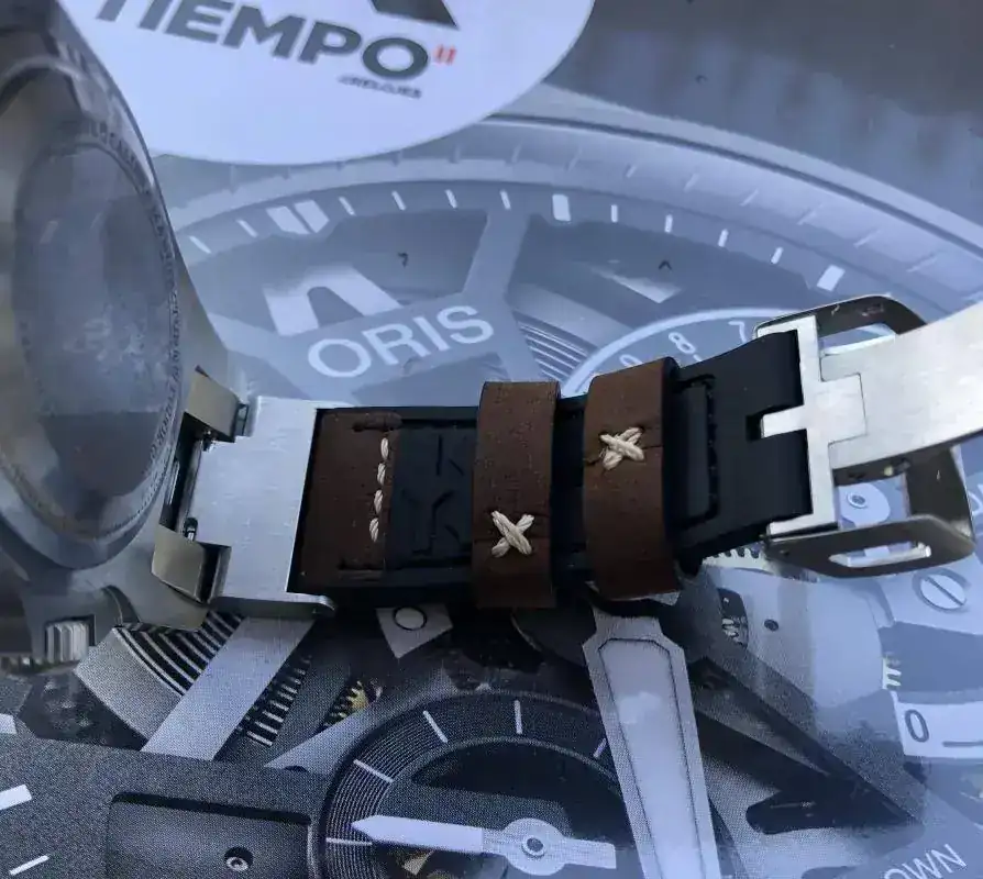 La correa de piel con pespunte le da un toque "elegante". Por el interior es de caucho. Es bastante dura.