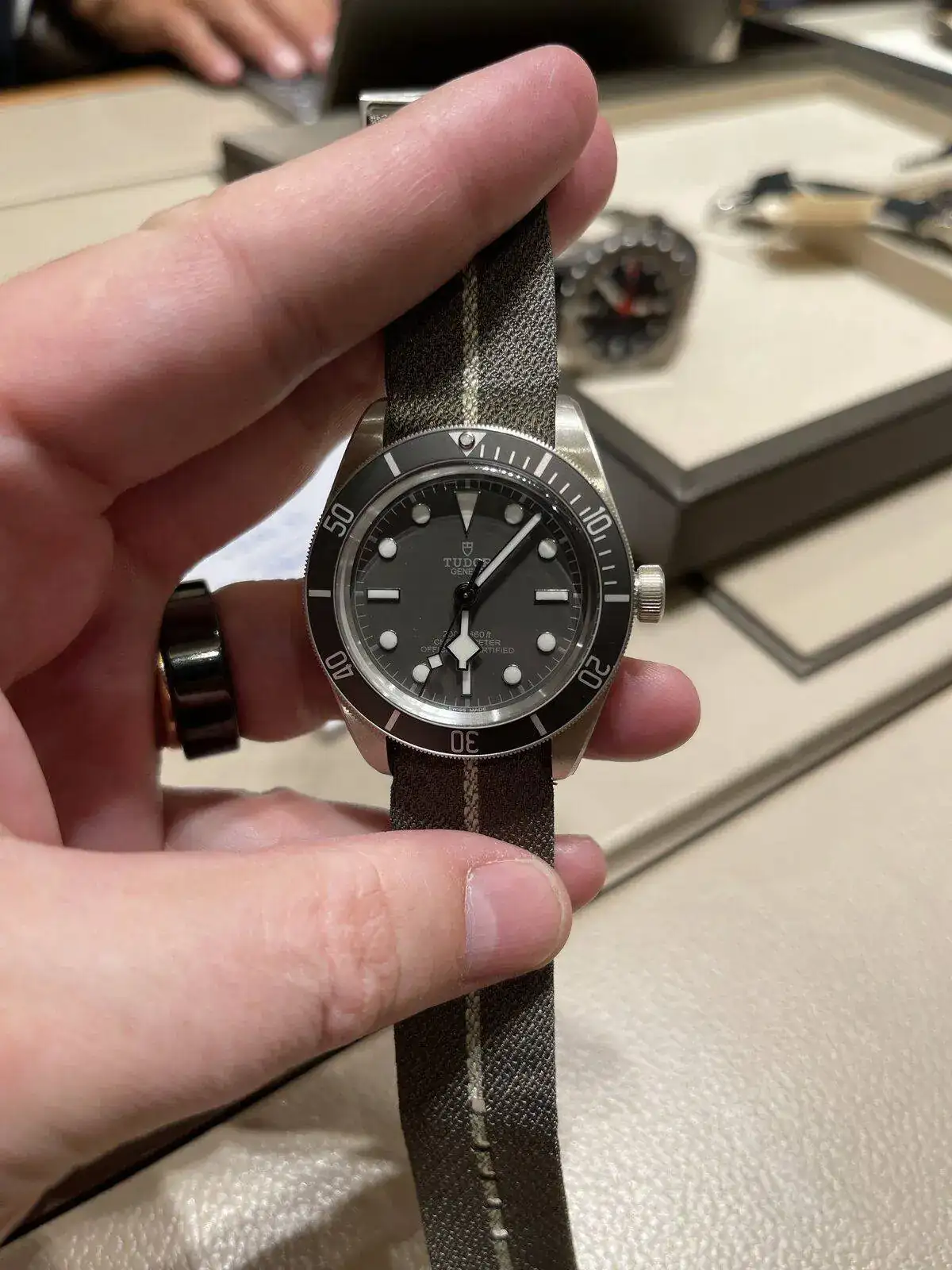 Me había encantado en fotos, pero fue verlo y enamorarme a pesar de sus para mi escasos 39mm. Y digo que es repetido porque es el tercer BB de mi caja, junto con el Burdeos y el bronce de dial gris verdoso.