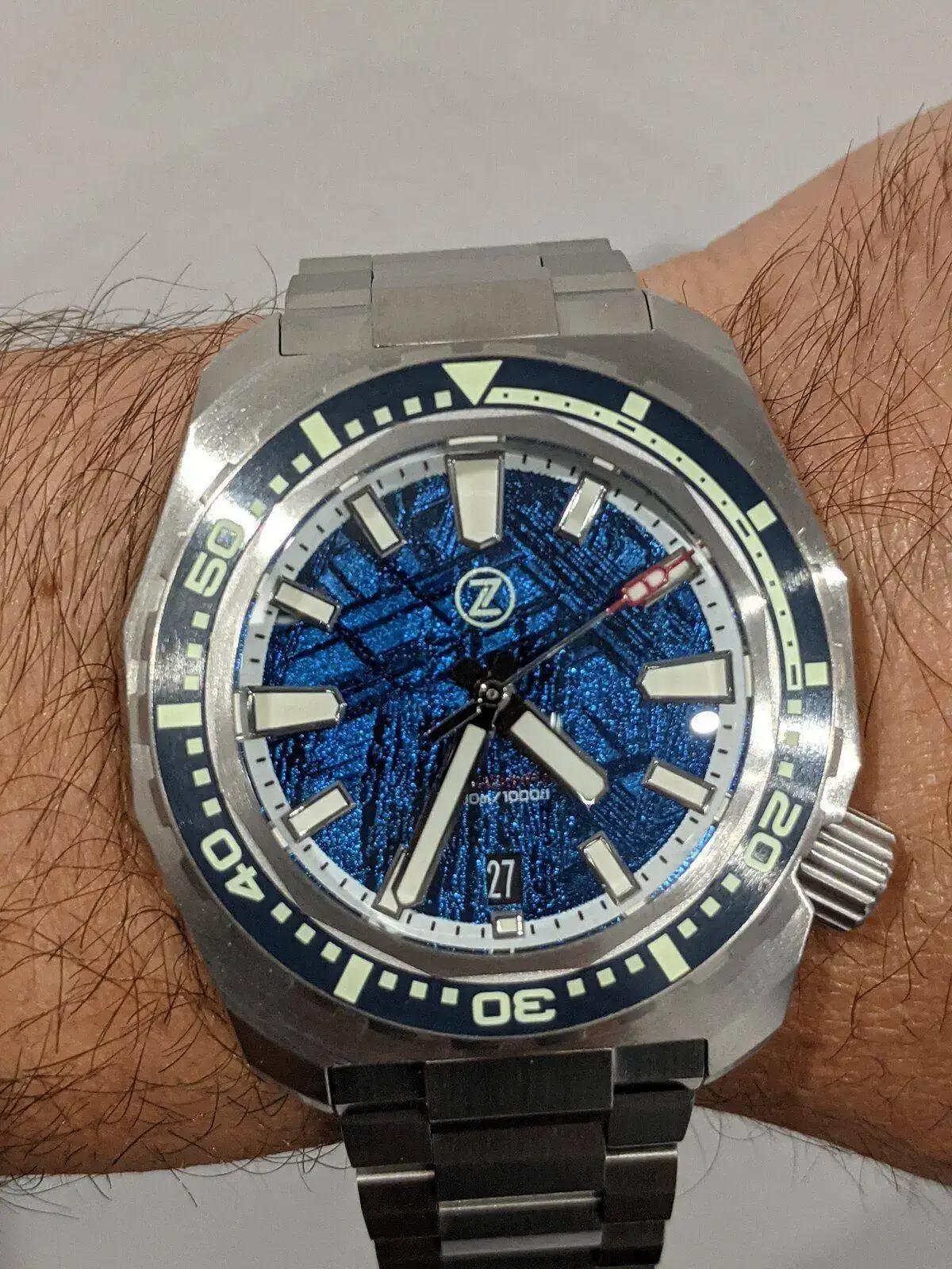 La presentación muy buena con la caja de madera, estuche de cuero etc, el reloj me ha venido con el bisel perfecto, el fondo de meteorito no tiene nada raro y me ha tocado un diseño de meteorito bonito...ahora bien...