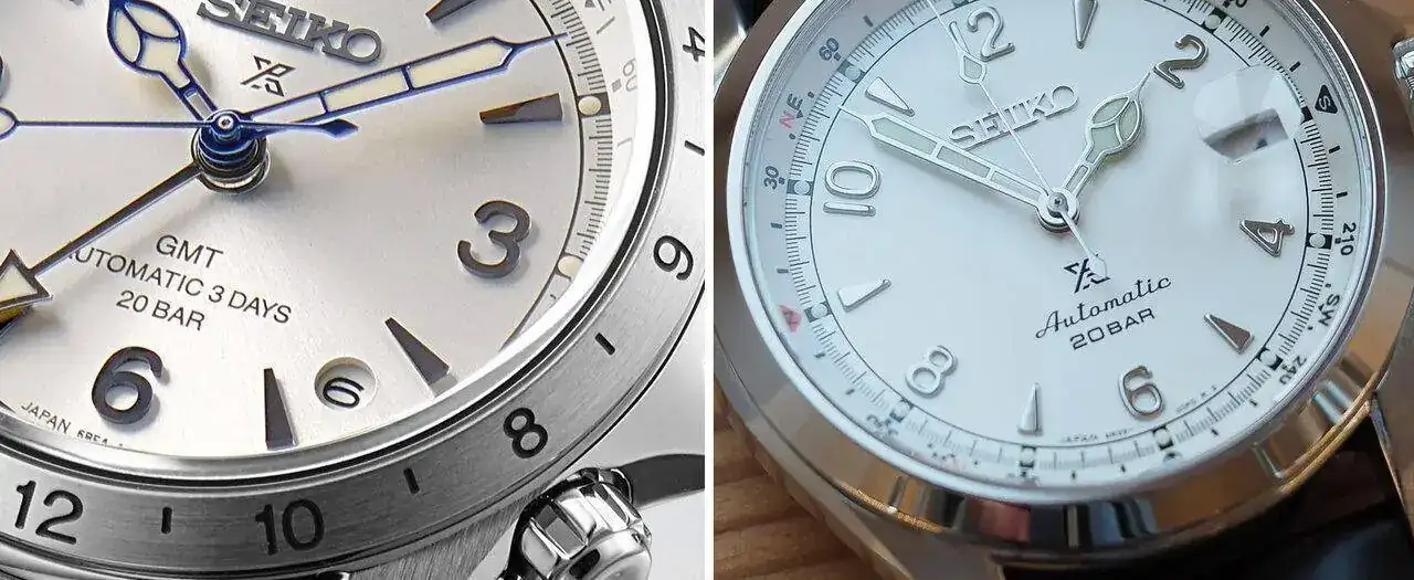 No me había fijado en el detalle de los índices y los números sin redondear, quizás por llevar un bisel cepillado en lugar de pulido les dieron un toque más deportivo, a mi gusto ha perdido parte de ese toque clásico del 3 agujas, lo de la fecha me gustan las 2, gracias por el aporte compañero.Están bonitos estos nuevos GMT Alpinist, aunque hay algunos detalles que no me acaban de gustar: preferiría que hubieran mantenido el estilo de números del dial del de 3 agujas, tuve el SARB017 verde y ahora tengo el "ghost" y para mi siempre ha sido un rasgo muy chulo que los números y los índices aplicados del dial tengan los bordes redondeados, le dan un aspecto muy chulo. En este GMT los números e índices tienen los bordes afilados, lo que me da sensación de no estar tan bien acabados. (Pongo una foto para comparar unos números/índices con los otros).