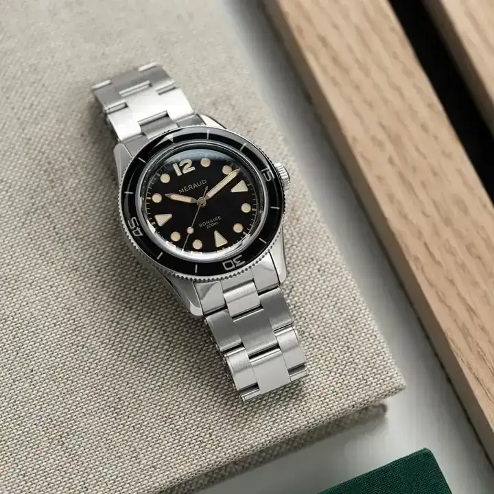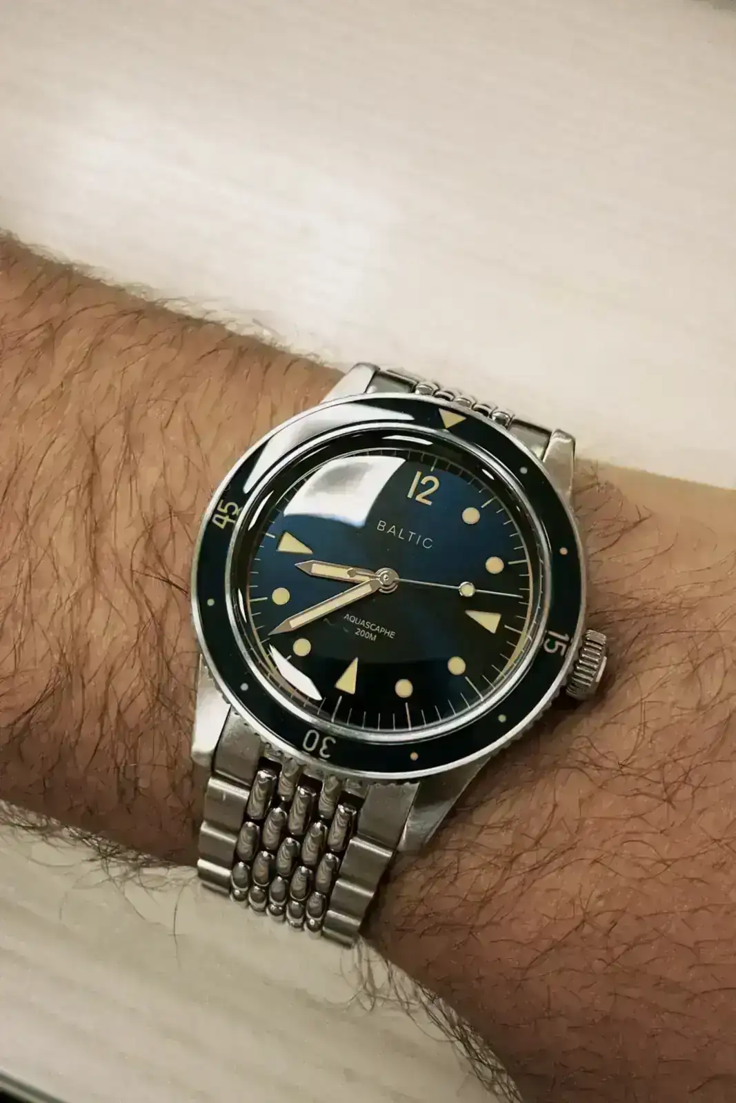 Venía con el cuchillo entre los dientes para despellejarlo por recurrir a, por enésima vez, un brazalete “granos de arroz”, pero compruebo que también está la opción de uno “flat”, ahora bien ¿con excesos de pulidos a espejo?. Y, sin embargo, también traía la intención de alabar la idea de ofrecer dos medidas, hasta que compruebo que la mayor es 38mm🤦🏻♂️, así es que es un reloj pensado para satisfacer a aquellos que les gustan los relojes con bisel pequeños o muy pequeños. Emo, si las opciones fuesen 36-38 y 41 satisfarían a los mencionados clientes pero, también, a los que les gustan algo más grandes. Sobretodo tratándose de un reloj con bisel.