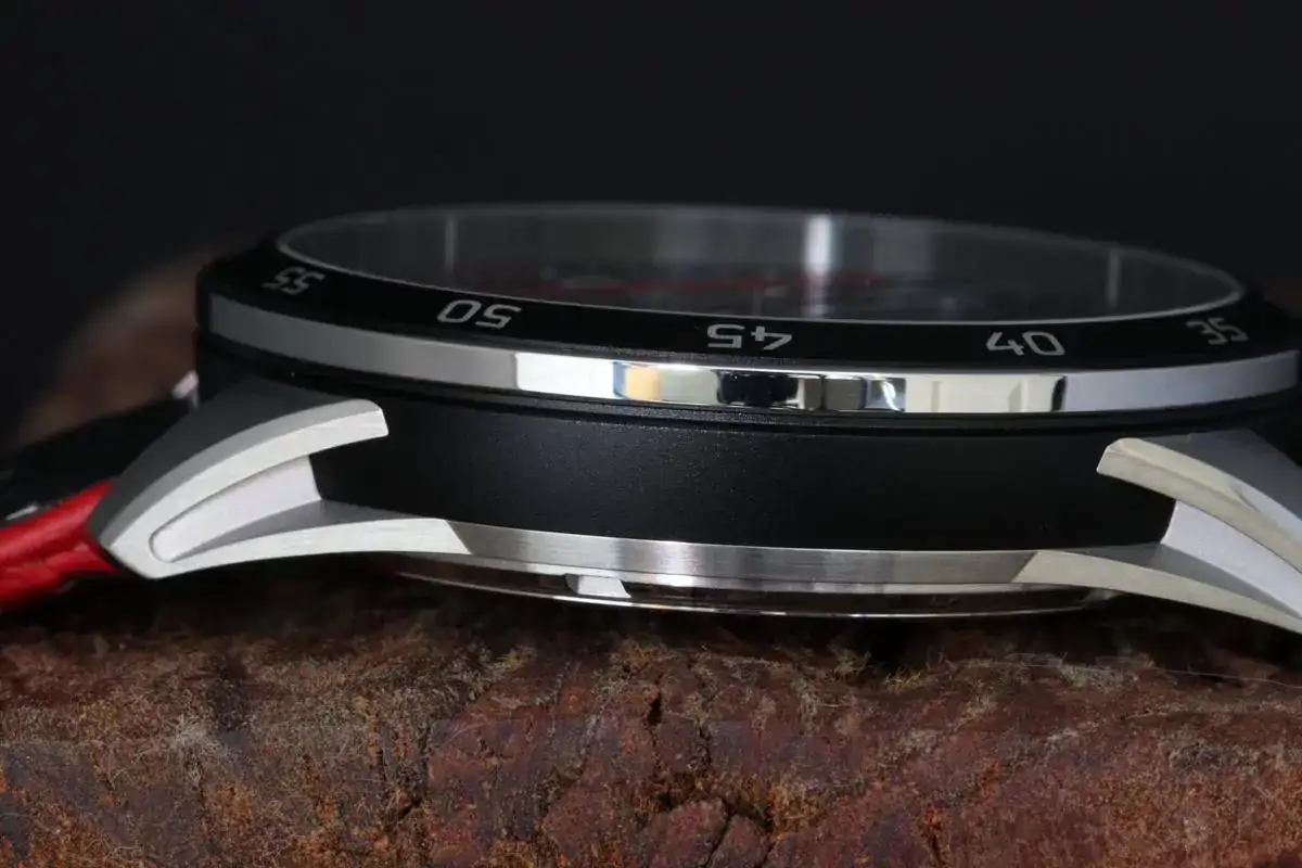El realce ("reahaut"), rodeado por el bisel extraplano, también ha evolucionado. Se ha reducido su inclinación para atenuar la diferencia de altura con la esfera. Mientras que los modelos anteriores de la colección Code 11.59 by Audemars Piguet presentaban marcadores cada cinco minutos, la nueva versión incluye una escala de los segundos más detallada. También se ha adaptado la tipografía de las cifras.