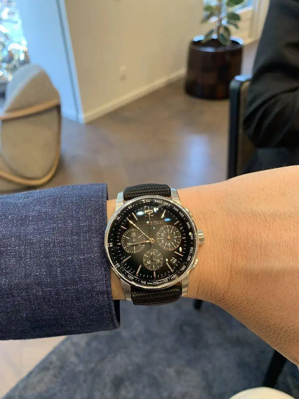 La foto es un poco chapucera, pero es muy guapo.Creo que no conocia esta configuración. Piel oro rosa, esfera azul, 15500?