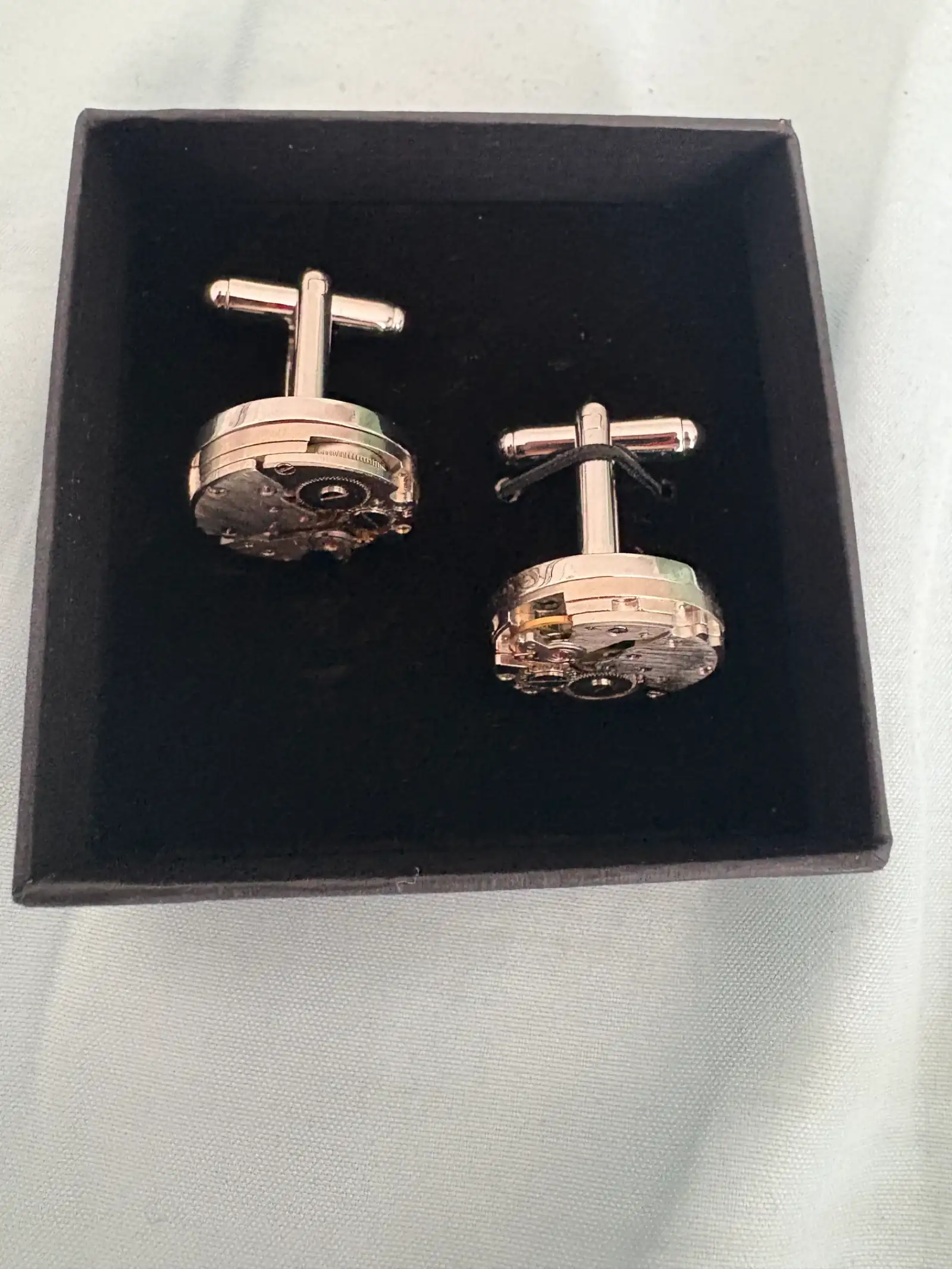 En Montreaux (Suiza), vi un stand de artesanos, que se dedicaban a hacer llaveros, anillos y gemelos, con maquinarias de relojes.