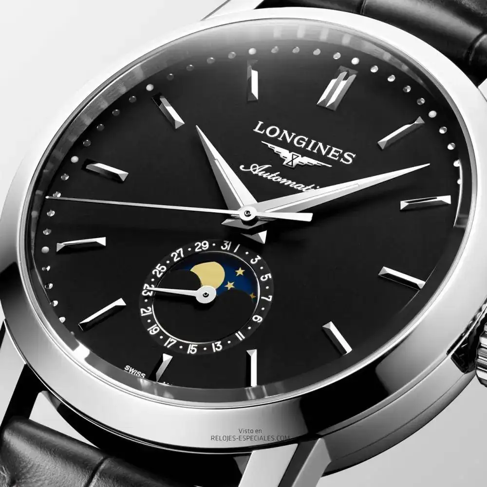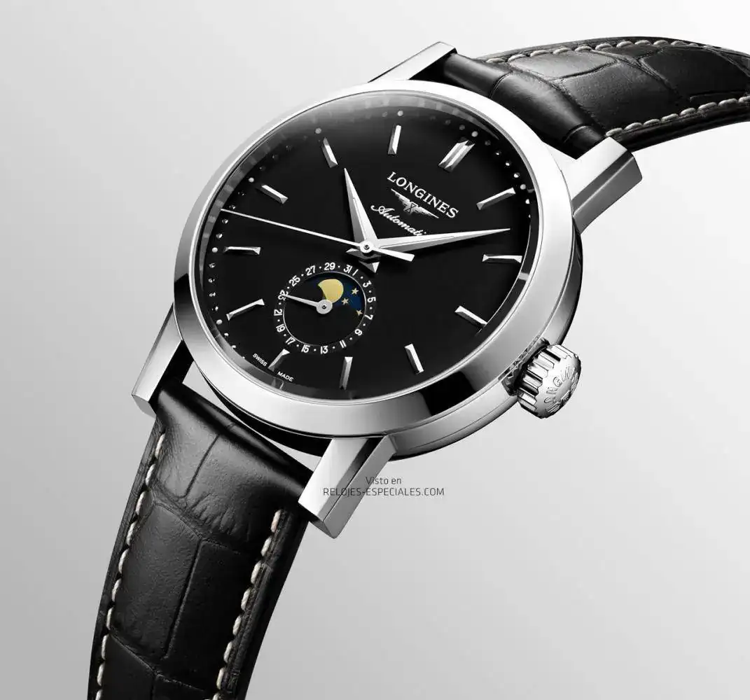 1832 es el año de nacimiento de Longines, y también el nombre de una colección clásica de la marca (The Longines 1832) que ahora se amplía con la esfera negro mate para varios de sus modelos: tres agujas con fecha, con fase lunar (calibre L899, base ETA) y calendario anual (calibre L897, base ETA). Además, se propone por primera vez una esfera en nácar beige e índices de diamante en los modelos femeninos de 30mm de diámetro.