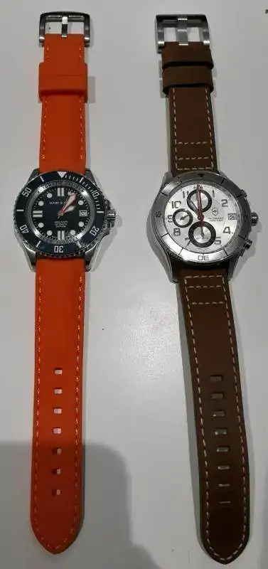 Y la de piel marrón se la he puesto al Victorinox Ambassador