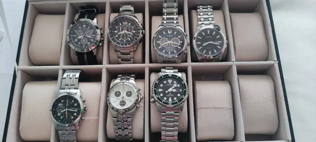 Hola. Pues, como el titulo indica, he tenido un mes muy activo en el ambito relojero, coincidiendo con mi llegada a este estupendo foro. Han entrado tres Citizen, y ha salido un Orient Kamasu, el cual salio fuera para que se pudiera quedar el diver Citizen Promaster que veis en la fila de abajo. Las otras dos nuevas incorporaciones son recien adquiridas en este foro a un excelente compañero del foro. (los dos Citizen de la fila superior a la derecha).
