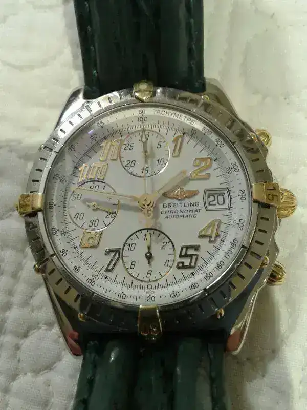 Buenos días: saco para venta o cambio por algún modelo que me pueda interesar, aportando diferencia en su caso, este excelente Bretiling Chronomat Vitesse acero y oro, comprado por mi en el Corte Ingles en el año 2000. Su estado de marcha es excelente, y su estado general también, si bien tiene su uso, por lo que un pulido le dejaría como nuevo, pero eso lo dejo a elección de su futuro propietario.