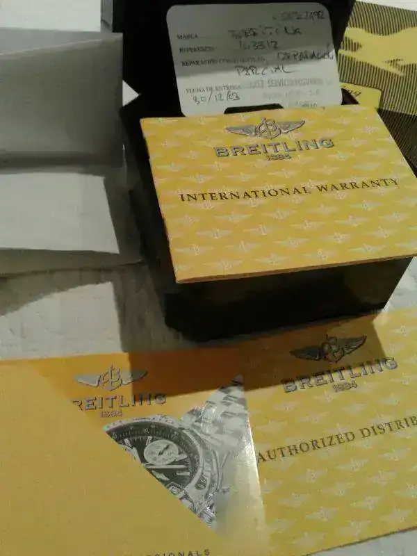 El reloj viene con todo su set, es de caja de 39 mm, cristal zafiro, wr 100 metros, calibre automático breitling con base ETA 7750.
