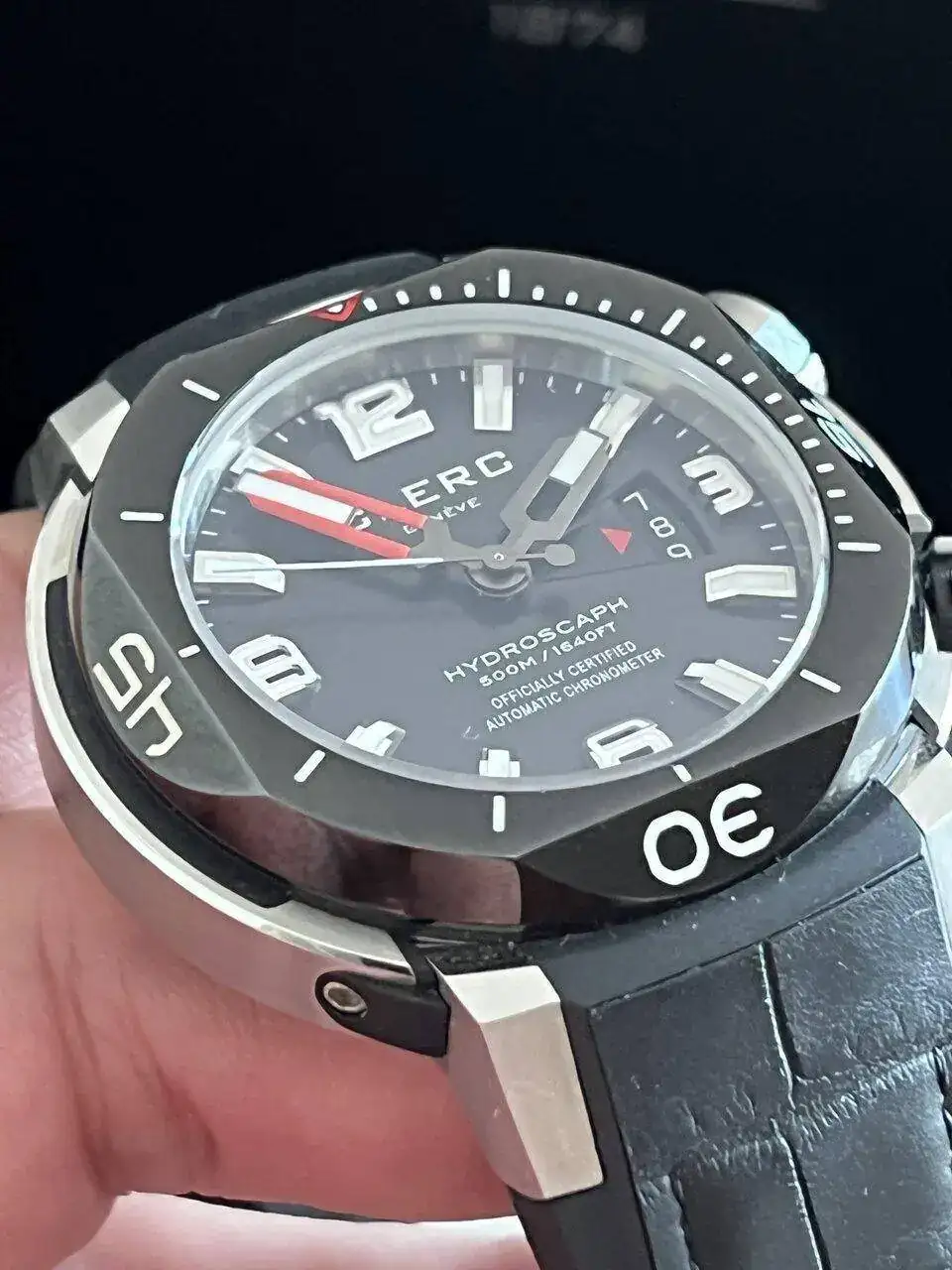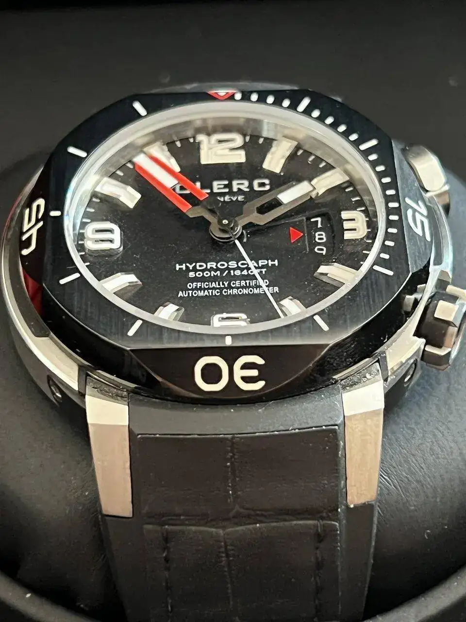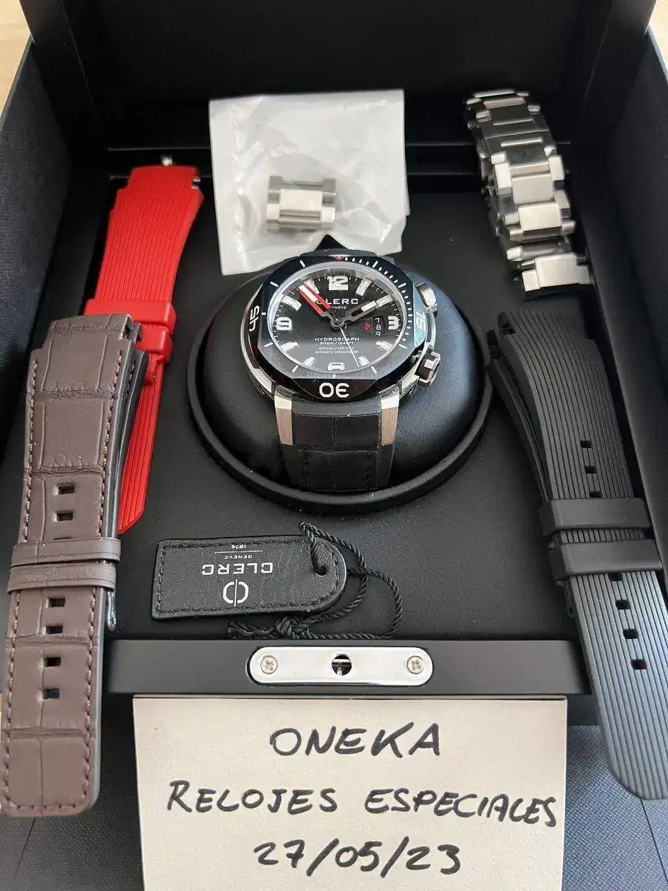 Vendo o propongo para cambio este impresionante diver. Se trata de Un Clerc Hydroscaph H1 con certificado Cosc. El reloj está en un estado de reestreno y cuenta con un set completísimo. Caja, papeles, 4 correas con un cierre desplegable y un armís, todo por supuesto original de la casa. La razón de la venta es que ya tengo otro Clerc similar que he usado más y este aunque me encanta lo reservé para no estropearlo.