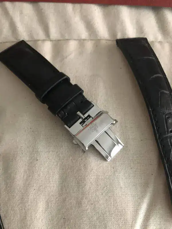 Brazalete: alligator original con deployante CyS, y correa alligator con pespunte crema a fuego.