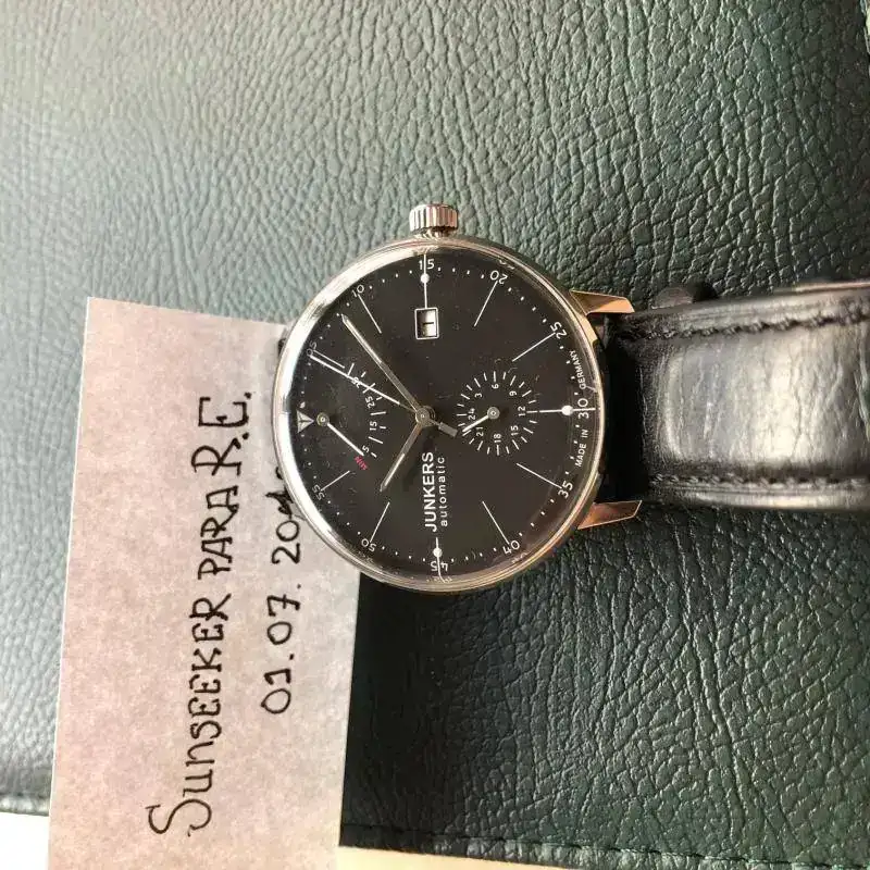 El primero es un Junkers 6060-2 con movimiento Automático e indicador de reserva de marcha de 24 horas. Monta un movimiento Miyota 9100 bastante exacto, aunque algo ruidoso, no demasiado, pero es una característica de este modelo. Lleva correa de piel y su estuche de origen.