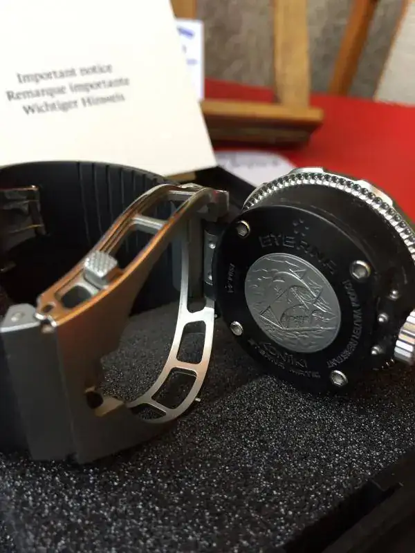 Es una edición limitada que se ha visto poco. Muy exclusivo por la mezcla de aqcero y titanio de su caja y por ese sistema de anclaje de la corona. Llama mucho la atención