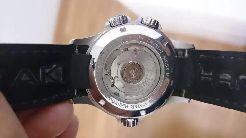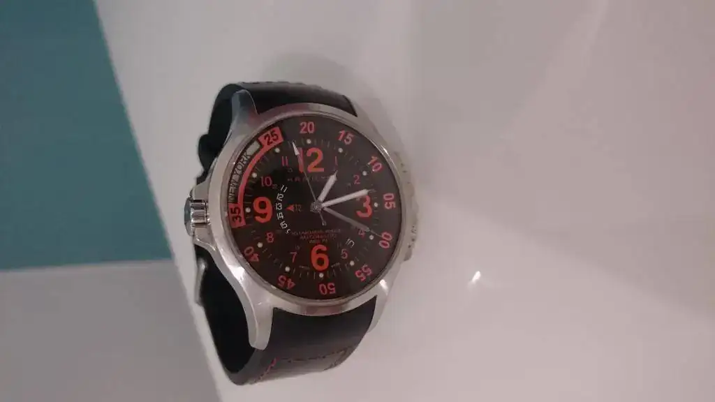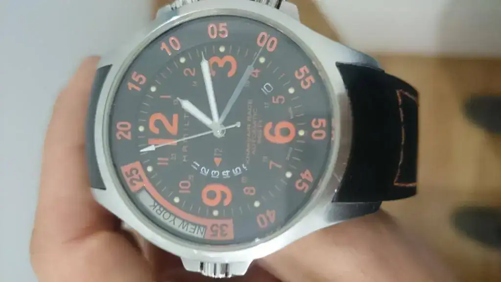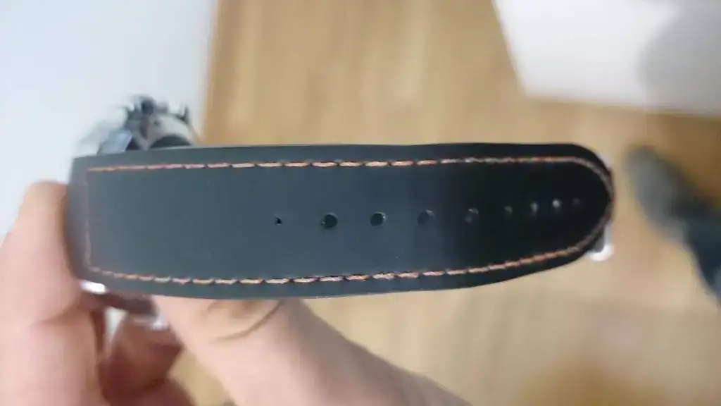 .- La correa tiene un agujero extra debido al tamaño irrisorio de mi muñeca. Lo hizo el relojero nombrado anteriormente, pero es más pequeño que el resto de agujeros. Es apenas imperceptible, menos aun cuando se lleva el reloj puesto. En una de las fotos se aprecia, creo bastante bien.