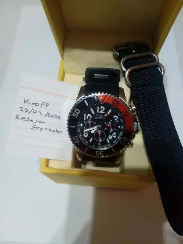 Comentaros que el reloj esta fenomenal,como podeis ver y que su marcha y reseteo son perfectos,el reloj lleva su correa original de silicona negra y para completar su armario,se entrega una nato,tambien del mismo color.Viene en su caja de la marca,pero sin documentacion.
