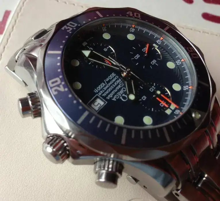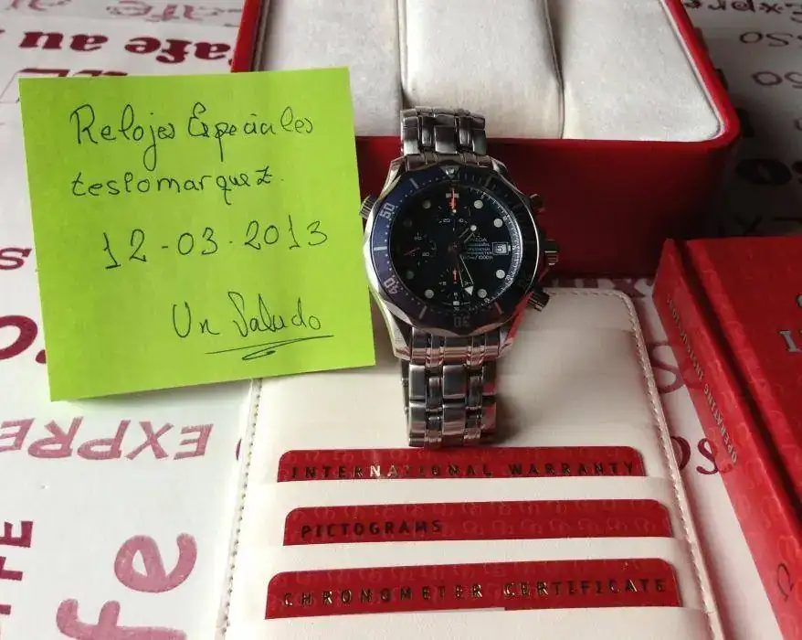 Hola amigos. Pongo a la venta este maravilloso reloj, recien recogido del servicio técnico. Se encuentra en perfecto estado, recien pulidito. las caracteristicas son de sobra conocidas por todos. Cabe reseñar que en revisión marcaba avance de +2 seg. dia. Dentro de norma COSC, como sabreis. Solo a destacar dos marcas en aro azul del bisel, una pequeña en zona de marca minuto 18 que apenas se puede apreciar en las fotos pues no es muy grande y otra mas leve aún que se no consigo sacar en imagenes por apenas ser apreciable en la zona de las 10. el bisel no se cambio porque se disparaba el precio final de la revisión. Tiene su dotacion completa de caja, tarjetas y manual de uso, a falta de la caja blanca que contiene todo el paquete. El precio que le pongo es de 1450 euros,pudiendo negociar dentro de un orden y con seriedad, puesto en casa por correo certificado. Si el comprador quiere algun tipo de seguro, correra de su cuenta. Para cambios, estoy intersado en tres relojes en concreto. Omega seamaster 2254.... el que lo posee sabe cual es... Longines legend diver con fechador... ajustando diferencias.... y Longines master chrono tres esferas.... a ser posible con fondo blanco, agujas azules, aunque el de fondo negro tampoco me desagrada o el fases lunares.
