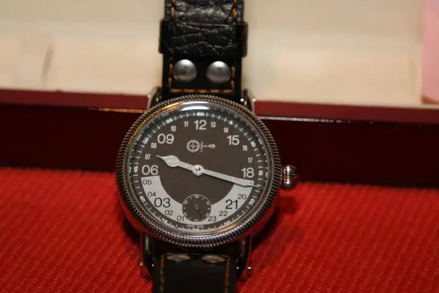 Esfera de 44mm, cristal mineral, calibre PI base Unitas 6496 manual, caja de acero con bisel pulido.