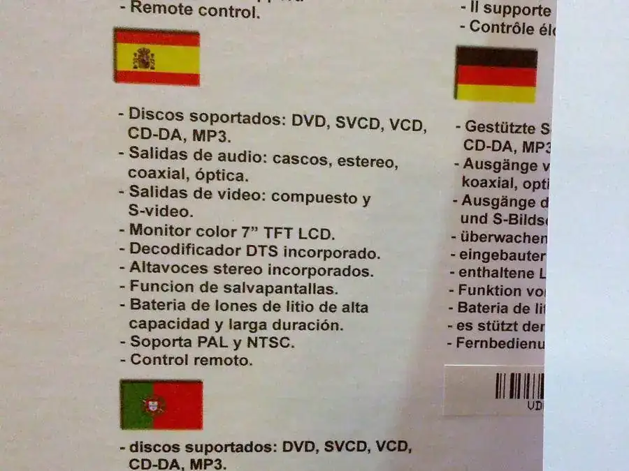 Hola amigos,vendo por 35 euros o cambio por correa Hirsch Duke negra con hebilla dorada en 18mm, un reproductor portátil de DVD.Es de 7 pulgadas,ideal para coche.Funciona perfectamente.Entrego con todo lo que se ve en las fotos,caja,cable del coche,mando remoto,etc...Puede funcionar con su batería o conectado a la red.Método de envío por cuenta del comprador.Preferiblemente entrega en mano en Madrid.