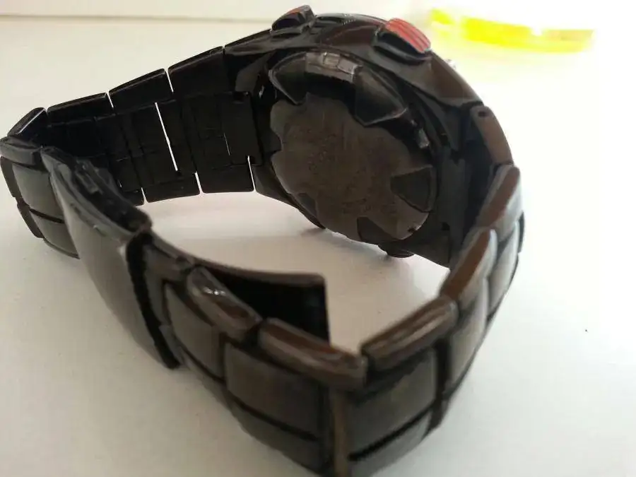 Este reloj de acero pavonado negro, en buen estado de uso y con la pila recien cambiada viene con su caja y su armis completo, el manual de instrucciones no lo tengo pero se puede descargar en la web del fabricante.