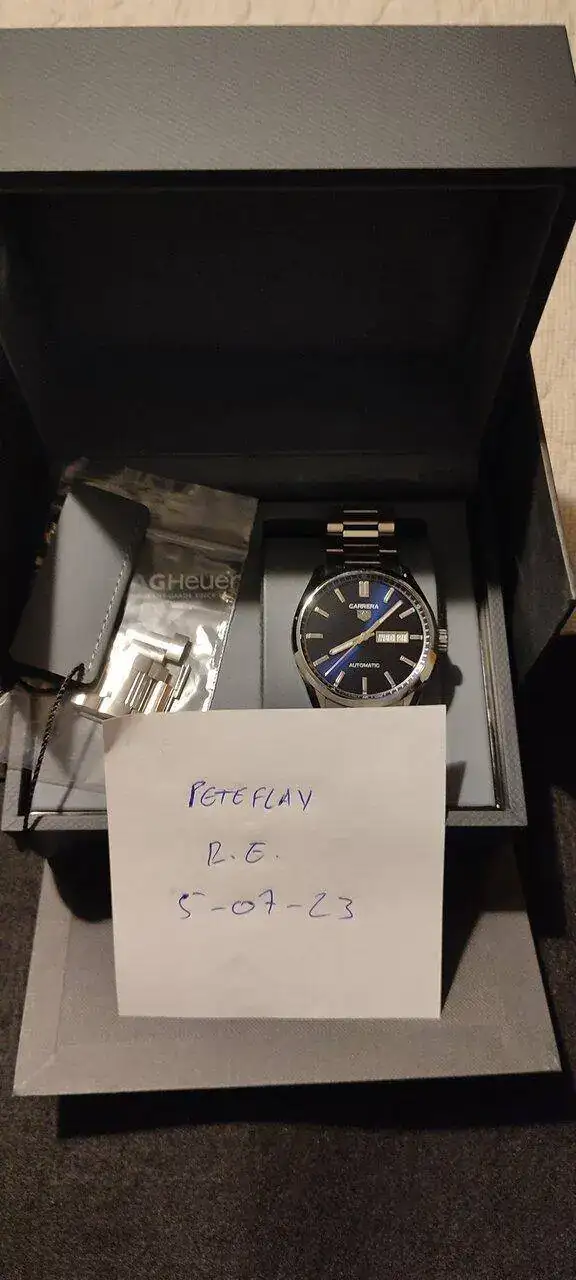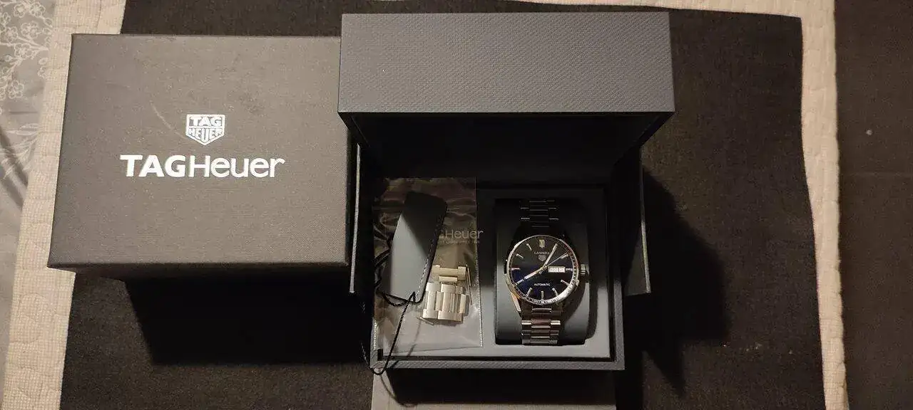 Saco para venta (principalmente) este bonito TAG Heuer Carrera Calibre 5 de 41mm, comprado en DO en enero de 2022 (con lo cual aún le queda garantía). Es el último modelo, lanzado en 2021. El reloj ha sido usado con moderación, pero está en muy buen estado, tiene algunas pequeñas marquitas en las partes pulidas del armis, pero nada destacable, las normales por el uso. Lo más "grave" que tiene es un arañazo leve en la parte pulida de una de las asas, pero es que ni se ve a simple vista. Como digo, el reloj está en un estado excelente para lo que lo he usado. De precisión está en +6 segundos al día, lo que está muy bien para no ser COSC. Si queréis más fotos e información no dudéis en contactarme, eso sí, ruego solo interés real.