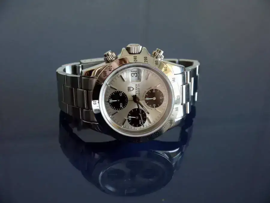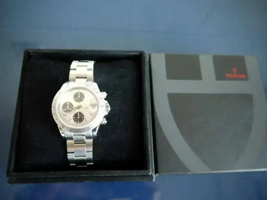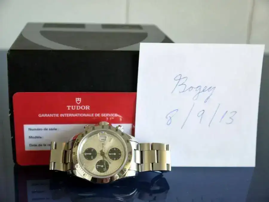 Vendo este magnífico crono Tudor, de 40mm. de diámetro. Su estado es muy bueno, tanto estético como de marcha, sin señales de uso destacables. No dispongo de la documentación original, pero viene con la tarjeta de la última revisión pasada en el SAT de Rolex Serrano en junio de 2010.