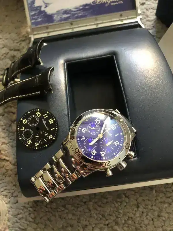 Dial : azul – violáceo. Incluye dial Breguet original vintage, en negro, para convertirlo en un 3800. Dos relojes en uno!