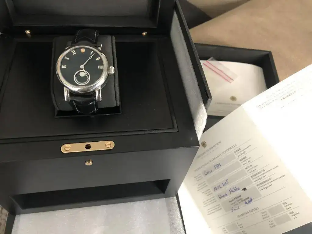 Dial : Negro , cristal de zafiro. Esfera Guilloche espectacular, e índices aplicados.