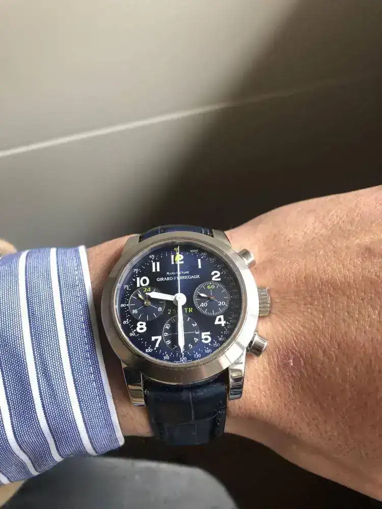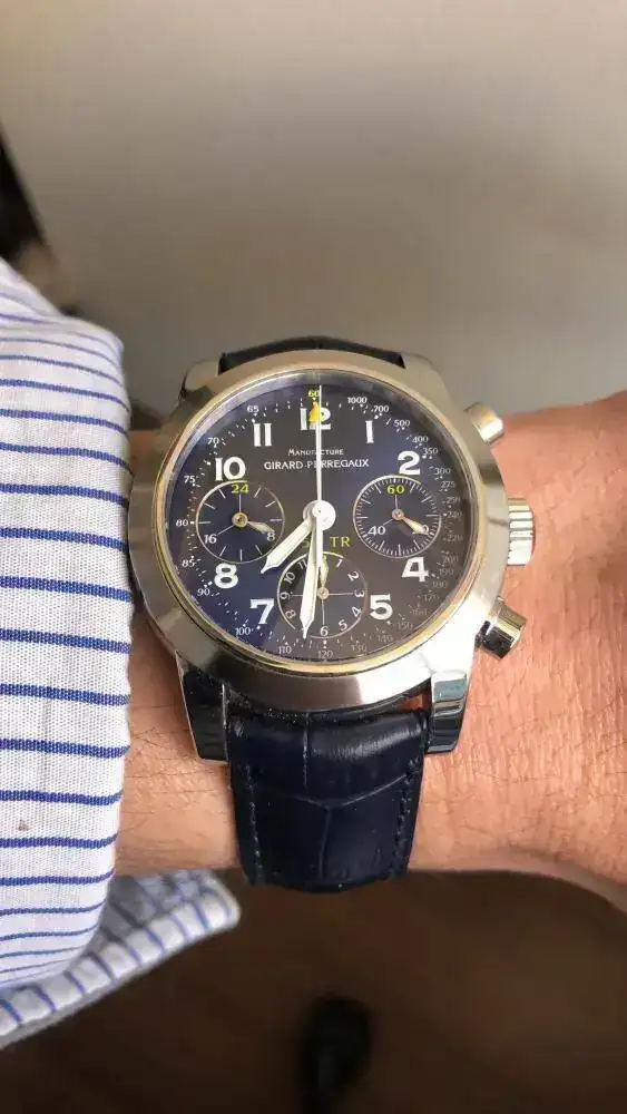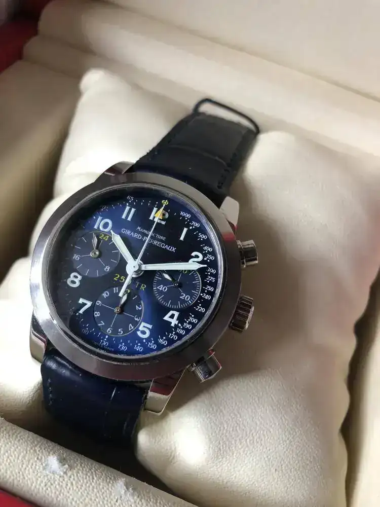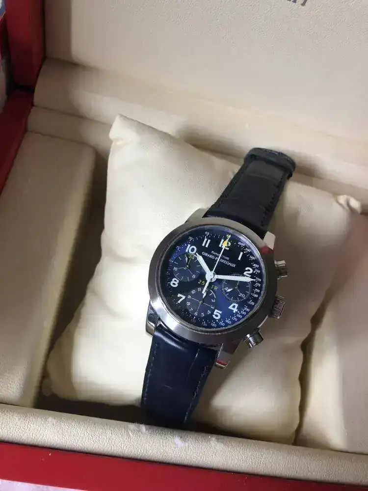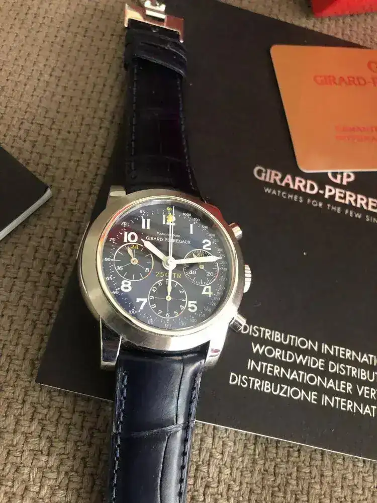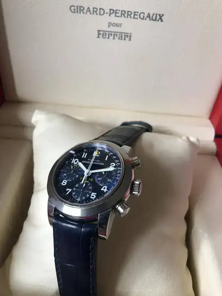 A principios del año 2000, Girard Perregaux y Ferrari firmaron un acuerdo de colaboración que estuvo vigente unos cuantos años, y de ahí la cantidad de relojes de temática “Racing y motor” de GP. En este caso, es conmemorativo de un modelo muy particular, el 250TR Testarrosa, pero……con la particularidad de ser solo para el mercado de USA, tal como viene reflejado en la trasera.