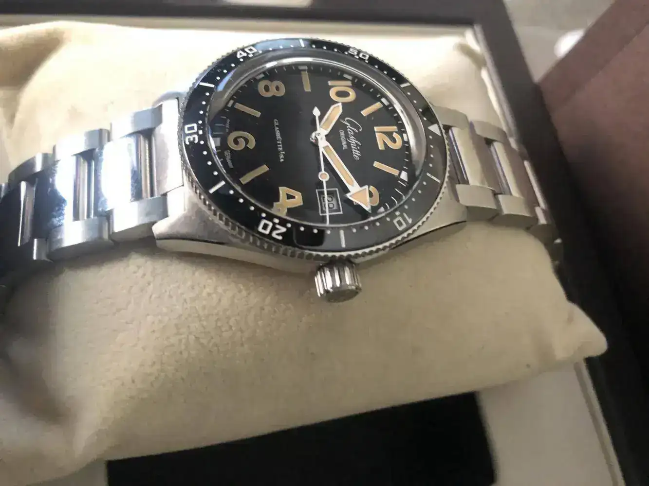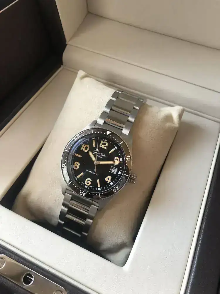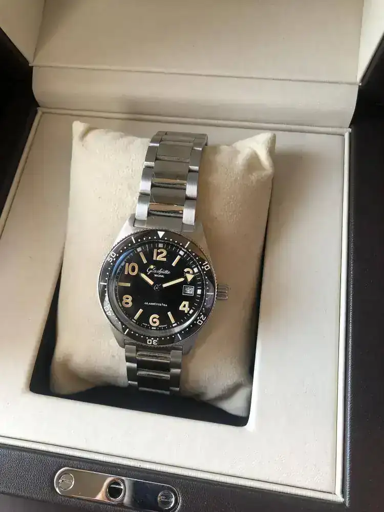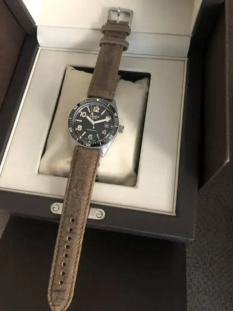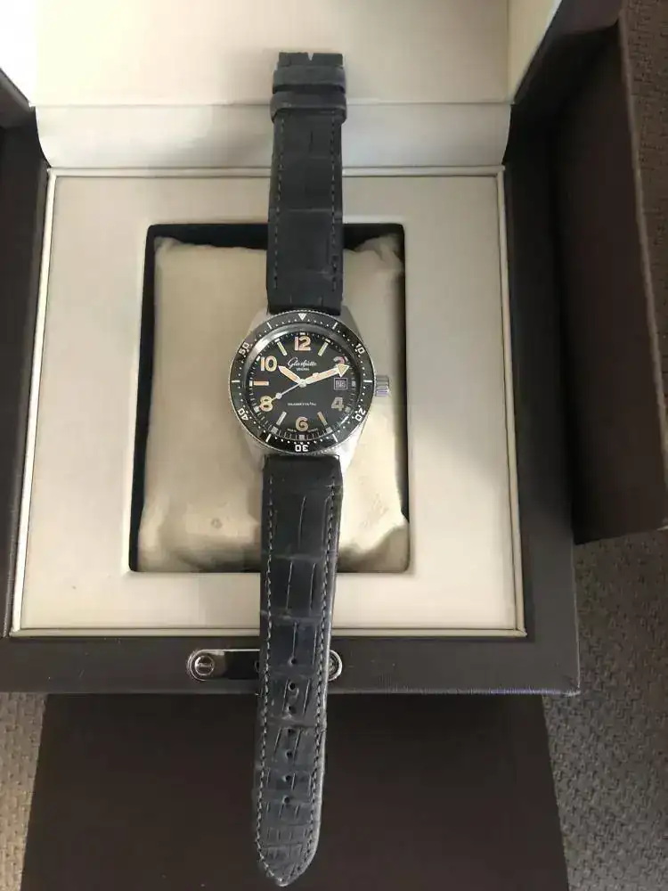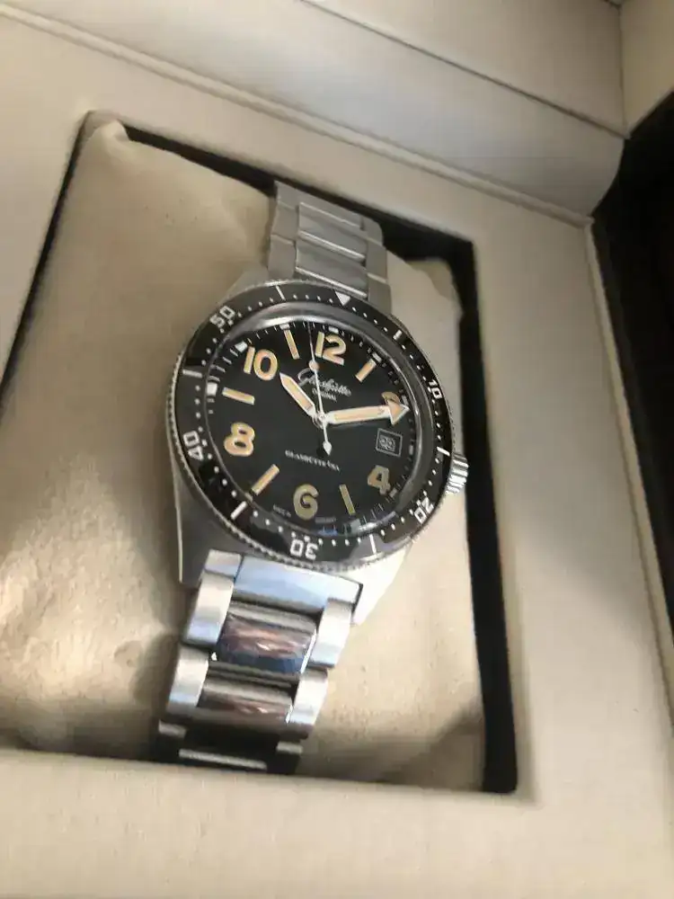 - Es un diver de Glashutte, alemán, creo que el primer diver de la casa. Reinterpretación de una pieza del año 1969, por eso los números van como van. La particularidad de este reloj sin duda es su dial y su movimiento manufactura, y que es un diver alemán.