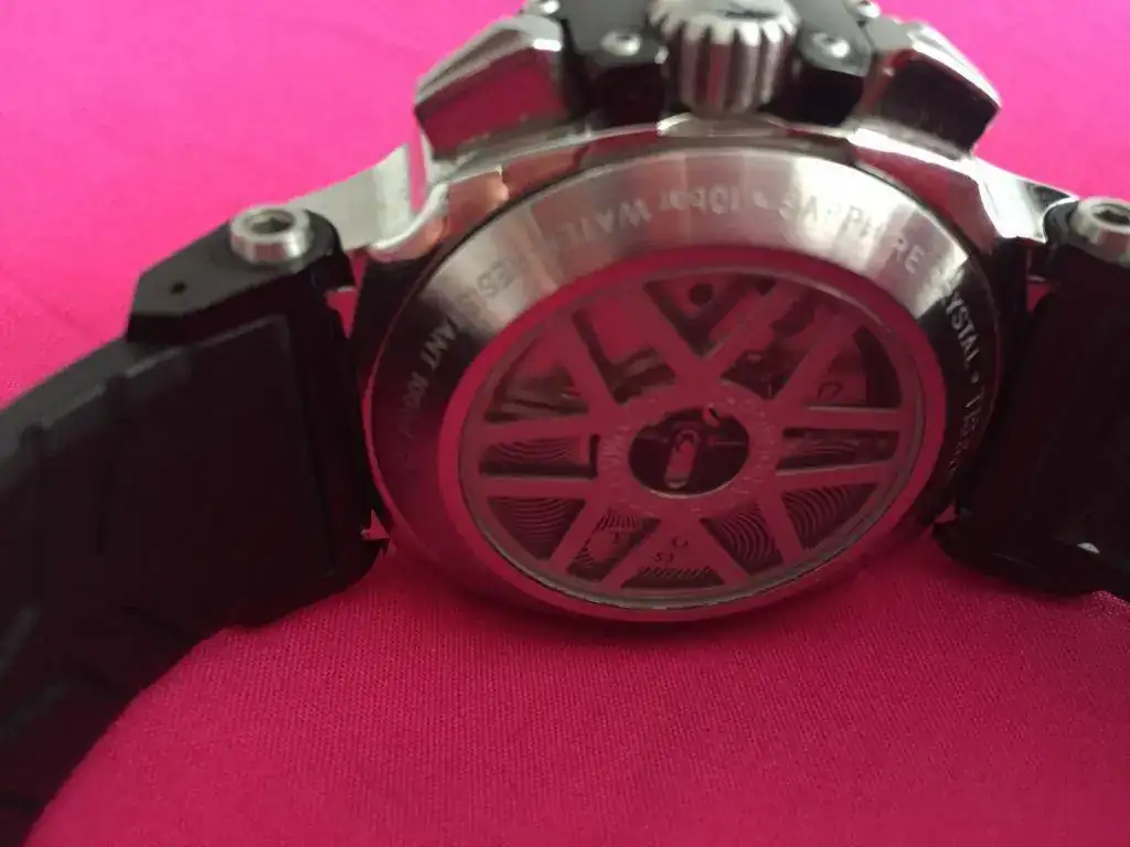 El reloj está usado, en buenas condiciones aunque con algunas ligeras marcas de ese uso. Al ser negro cualquier micro-arañazo se nota el doble... Si buscas un re-estreno este no es tu reloj.