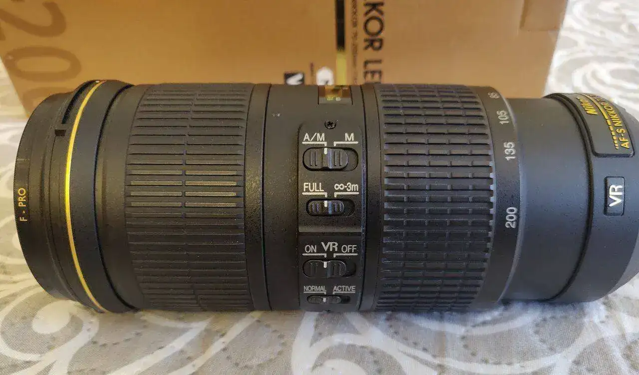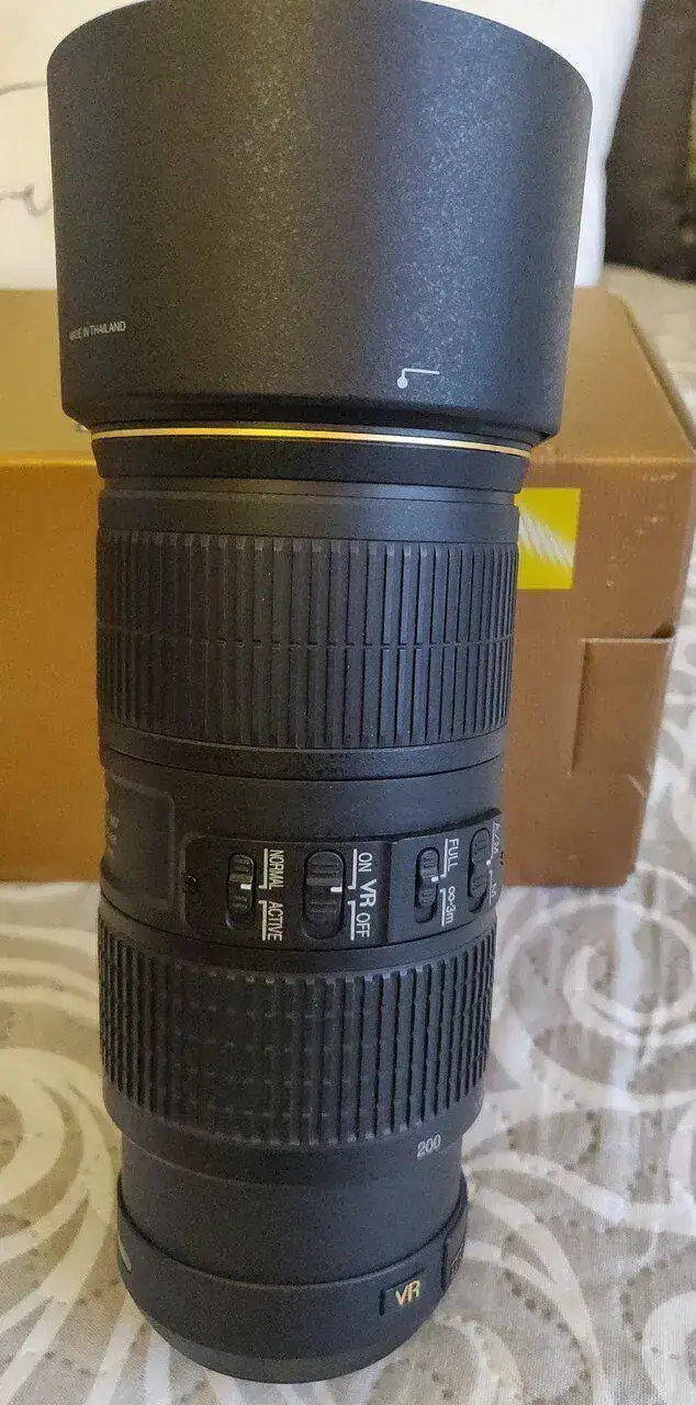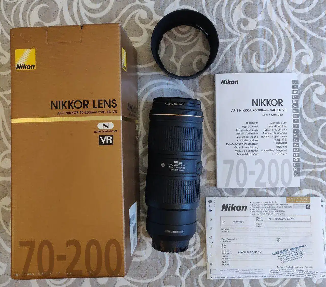 - Nikkor 70-200 F/4 G ED VR. Igual que nuevo 9/10 y también completo con caja, funda, tapas, parasol y filtro B&W UV para proteger la lente. Precio: 620€ envío incluido.