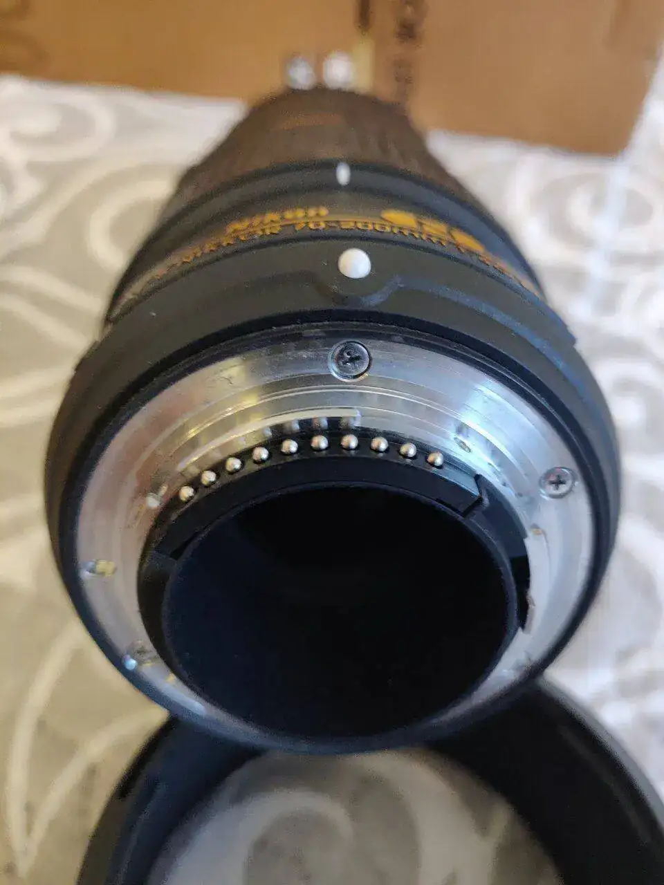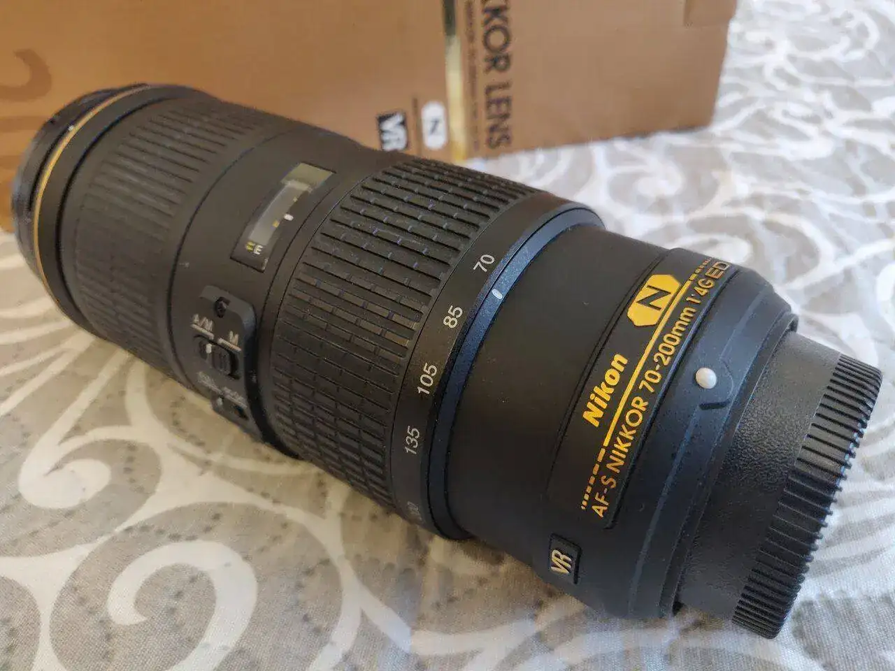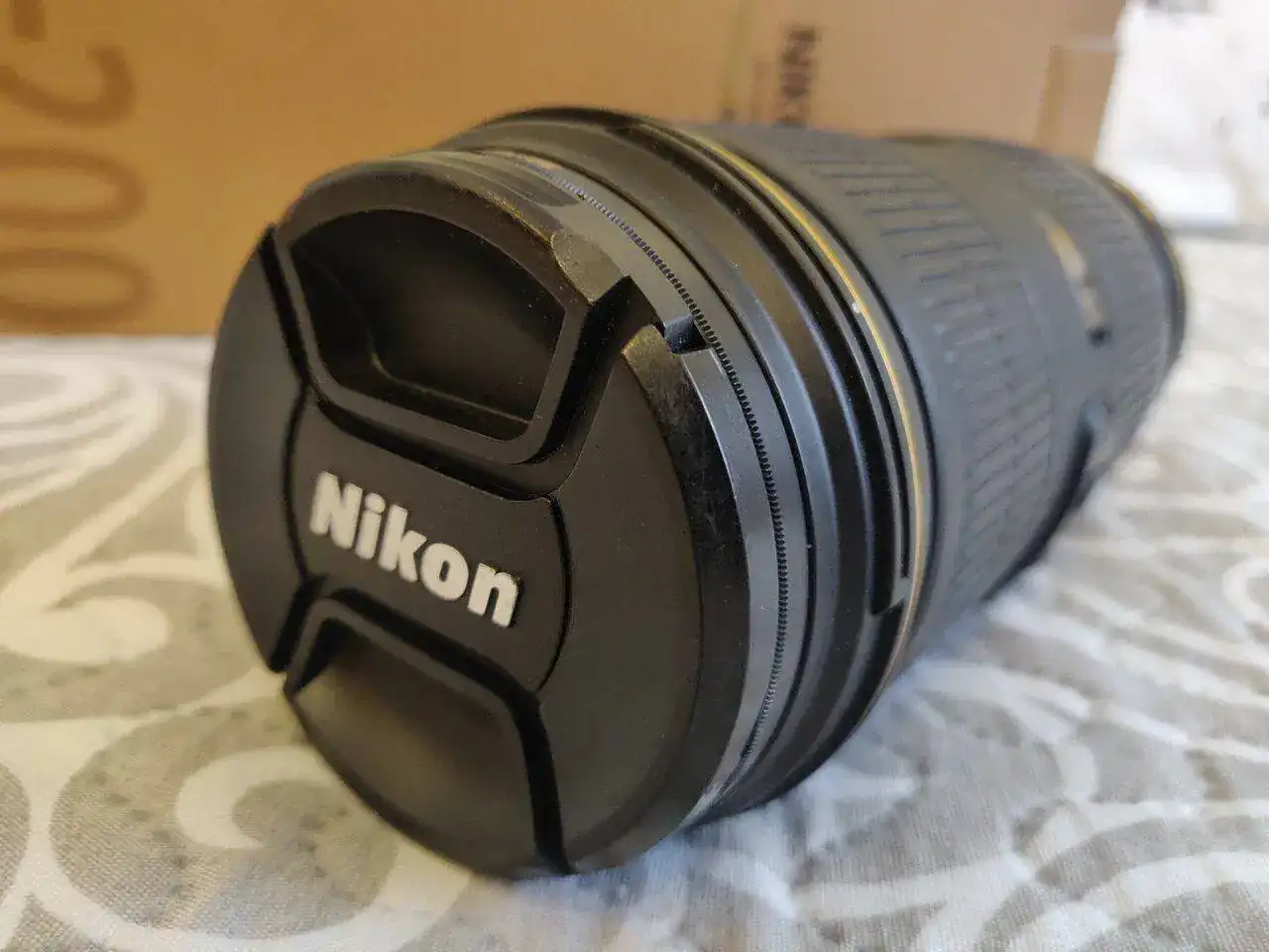 - Nikkor 70-200 F/4 G ED VR. Igual que nuevo 9/10 y también completo con caja, funda, tapas, parasol y filtro B&W UV para proteger la lente. Precio: 620€ envío incluido.