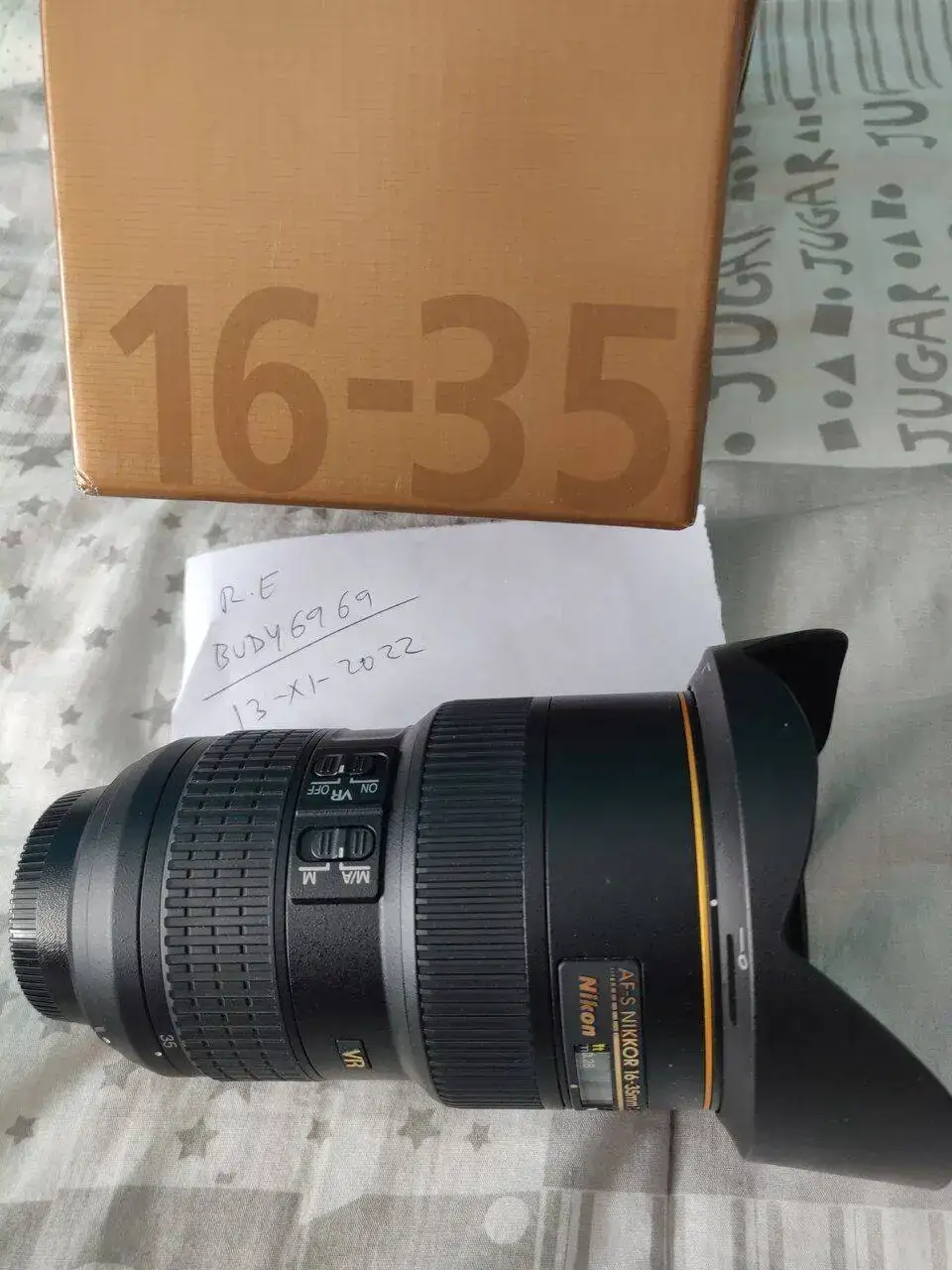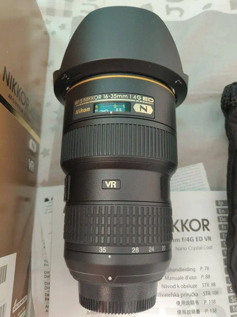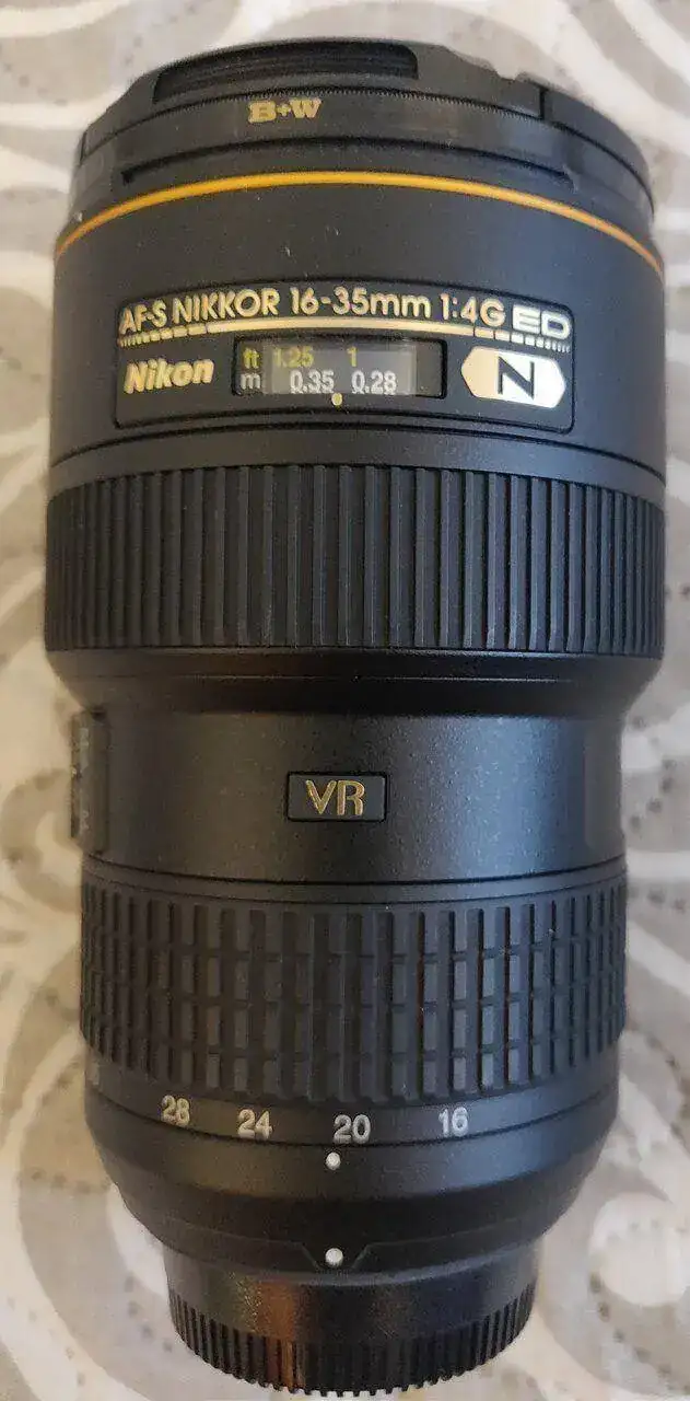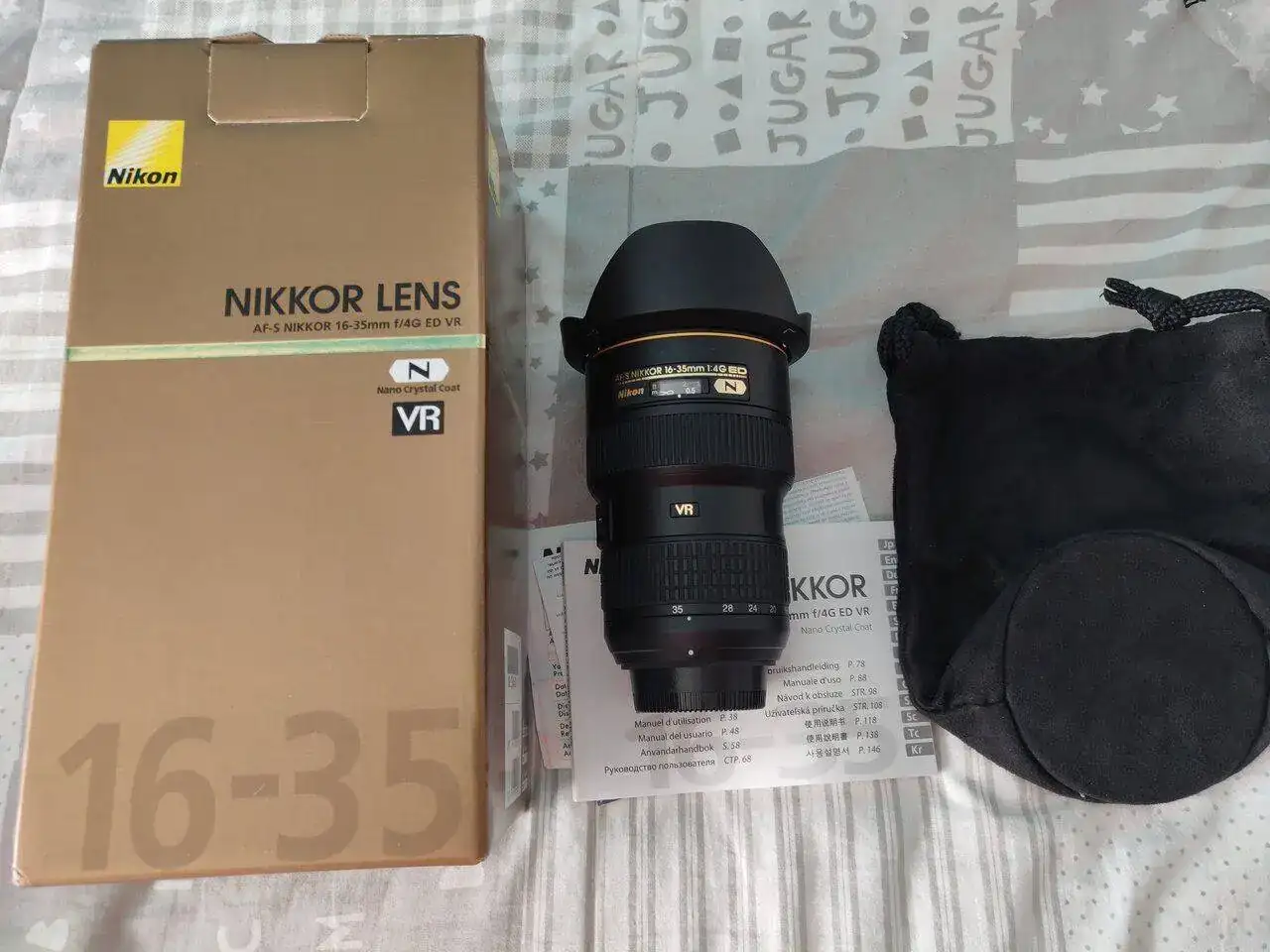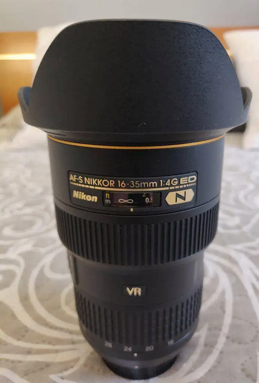 - Nikkor 16-35 F/4 G ED VR. Estado espectacular, poquísimo uso. También dotación completa, caja, papeles, tapas, parasol y cómo no, filtro UV de B&W. Precio: 570€ envío incluido