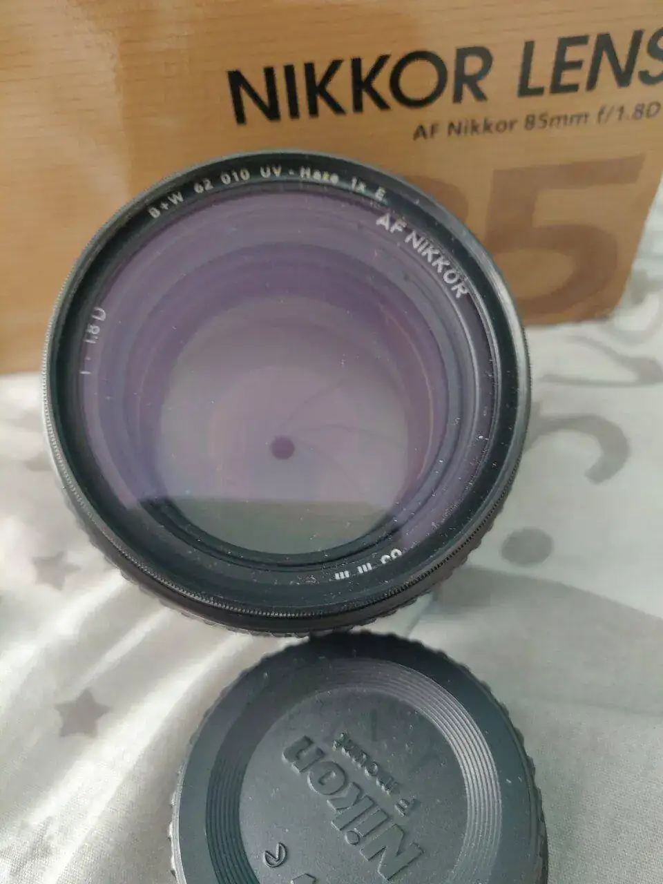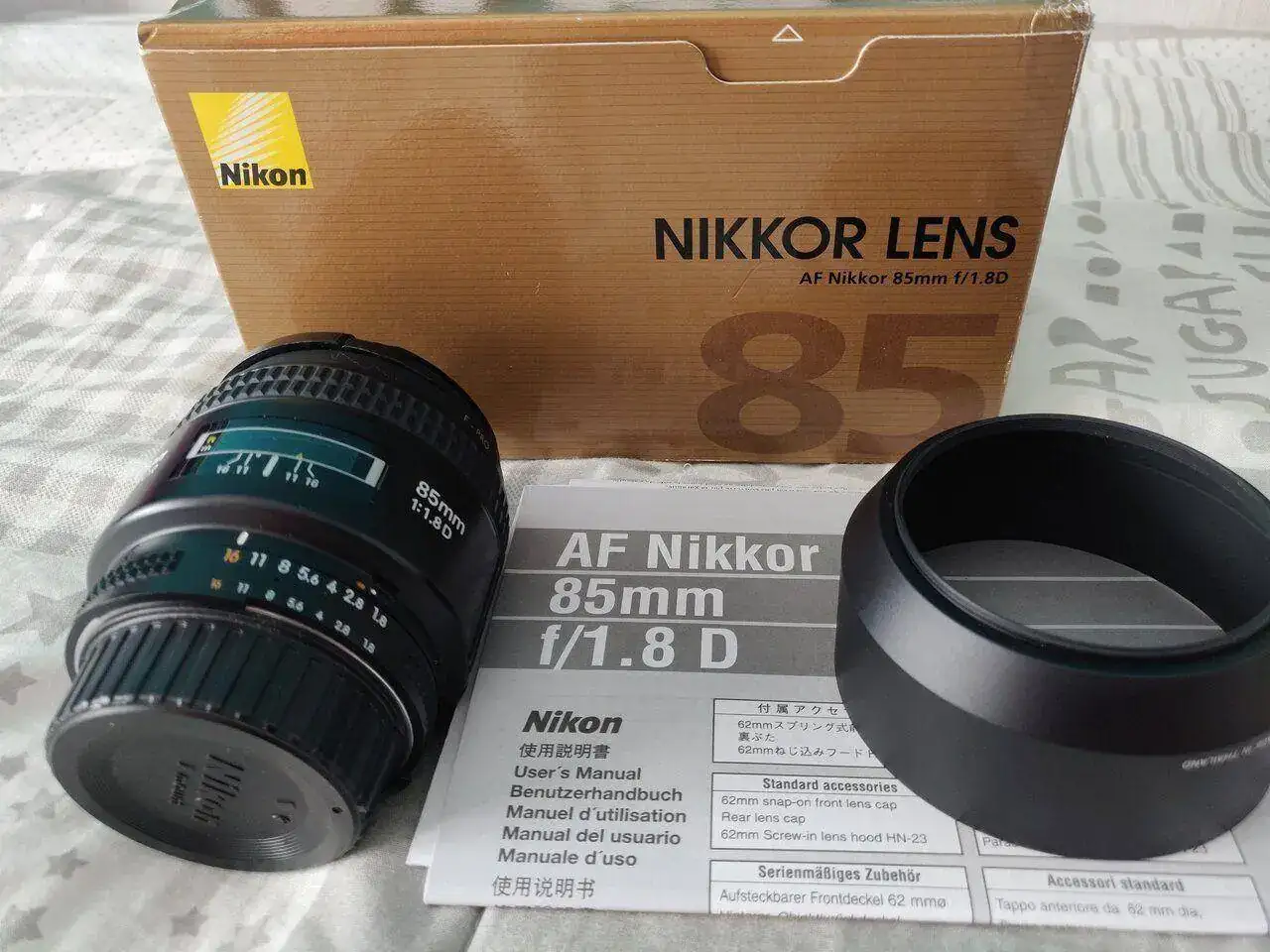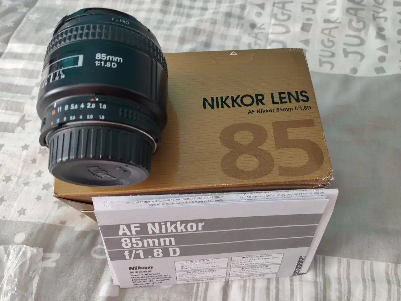 - Nikkor 85 F/1.8 D. Al igual que el 60, está impecable, igual que nuevo y dotación completa, caja, libro, tapas, parasol y también lleva un filtro B&W UV. Precio: 320€ envío incluido