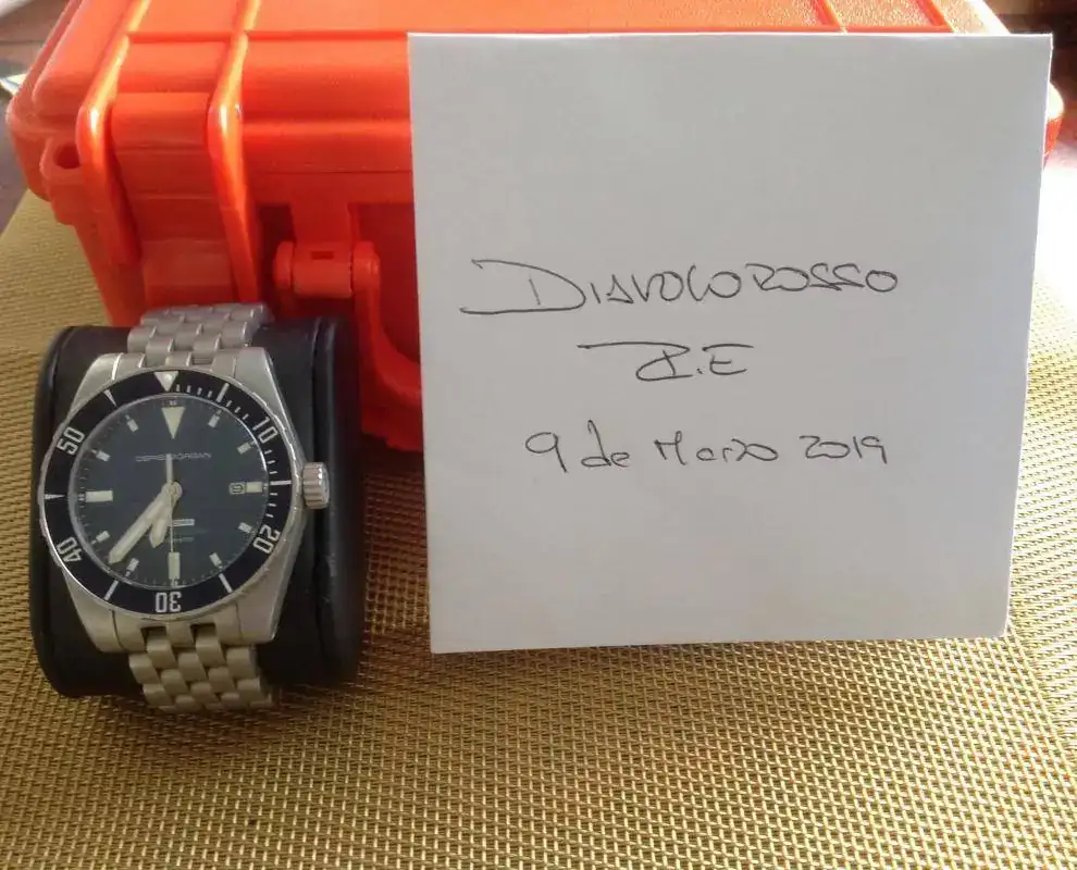 Miyota 9015, 42mm. sin corona, zafiro con tratamiento antirreflejos, marcadores tratados con Superluminova, 200 m, válvula de He, brazalete metálico de cinco eslabones de acero macizo, acabado cepillado y dial azul profundo. Dotación completa (caja tipo Pelikan, documentación, destornillador, correa de caucho azul, eslabones sobrantes). He sido su único propietario. Por favor no ofertas absurdas ni cambios. El reloj tiene una sola puesta, por decir algo y su estado es impoluto. Cualquier duda o aclaración mediante mp o wasap. Gracias por llegar hasta aquí.