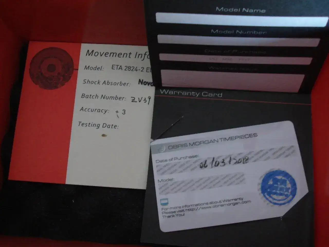 Maquinaria Eta 2824, 300 metros de resistencia, con su caja y todos los accesorios que lleva, destornillador, pasadores