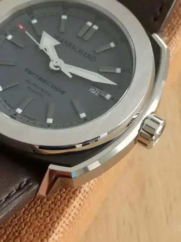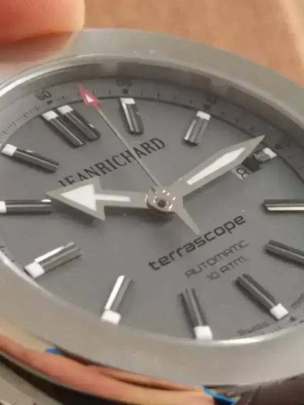 Con una medidas comedidas de 44mm, JeanRichard se adapta increíblemente bien a casi todas las muñecas debido a su caja en forma de cojín y su corta distancia entre asas, de tan solo 50mm, haciendo que el reloj tenga presencia, pero no sobresalga del ancho de la muñeca.