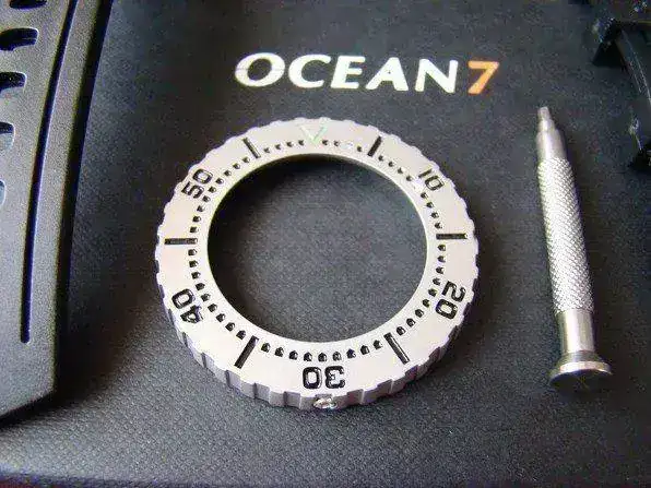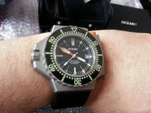 Vendo este Ocean7 LM-7 de 1.250 m. Professional de titanio, lo entrego con su correa isofrane, milanesa y con otro bisel de titanio que se puede alternar con el de zafiro con mucha facilidad, gracias a la herramienta que se incluye en el pack, el reloj ha sido utilizado en un par de ocasiones, es muy cómodo de llevar , gracias a que es de titanio, y no tiene ninguna marca de uso.