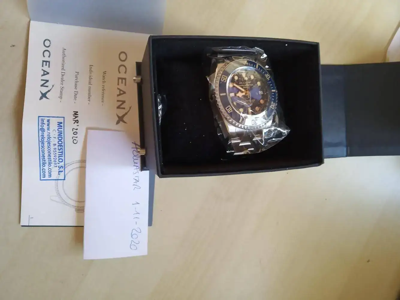Hola a todos, pongo a la venta un fantástico Oceanx Sharkmaster 600 con calibre automático. Lo he usado unas 5 ´o 6 veces aunque sólo tiene alguna marca en el cierre del brazalete que de cuando en cuando se "abre" es decir a pesar de hacerle click y ponerle el cierre de seguridad, en ocasiones el cierre desplegable se abre. Nunca cae porque tiene el cierre de seguridad. Supongo que debe ser una tontería pero lo menciono para evitar ningún malentendido. Echadle un vistazo a las fotos. El reloj tiene mucha presencia y está muy chulo.