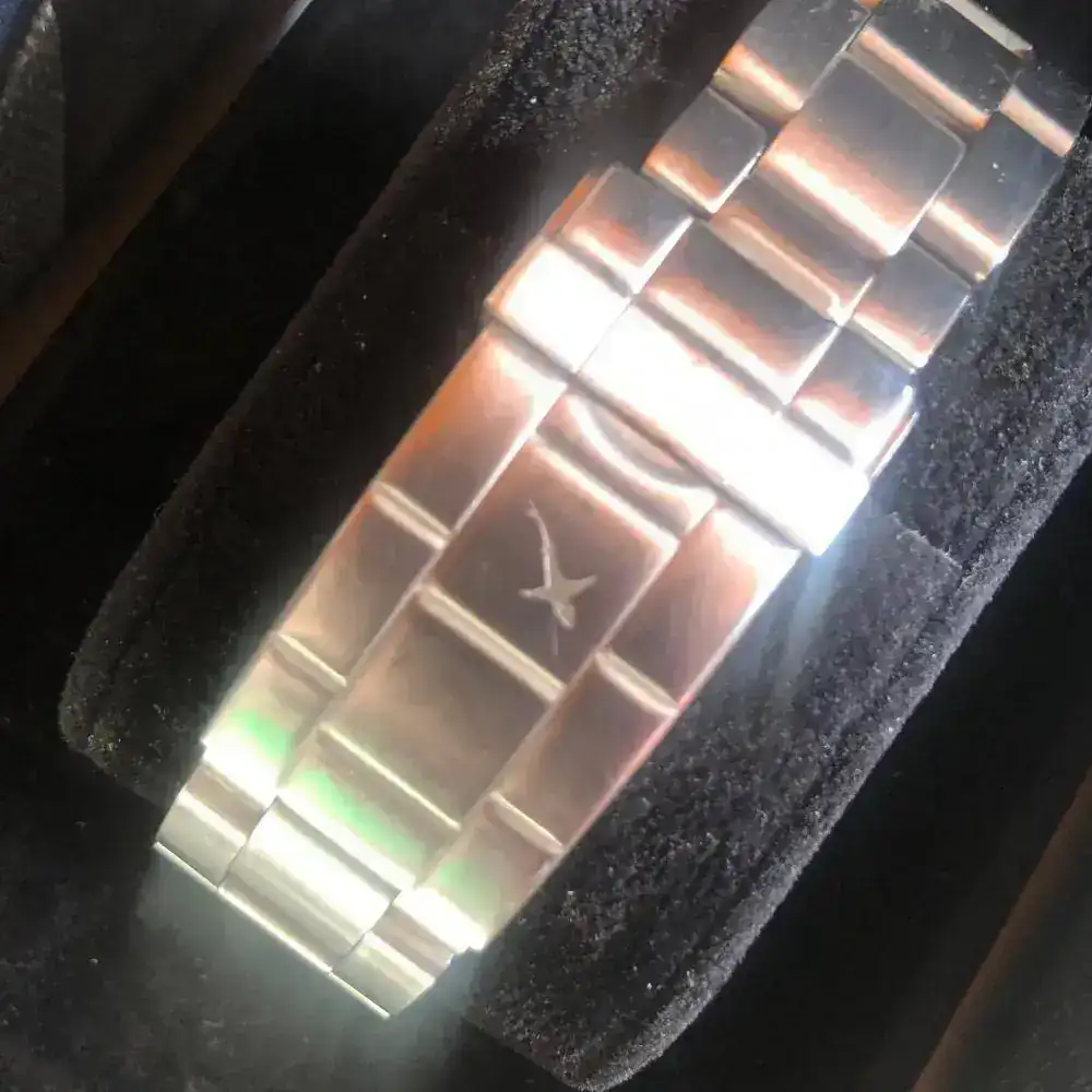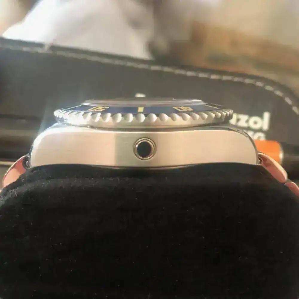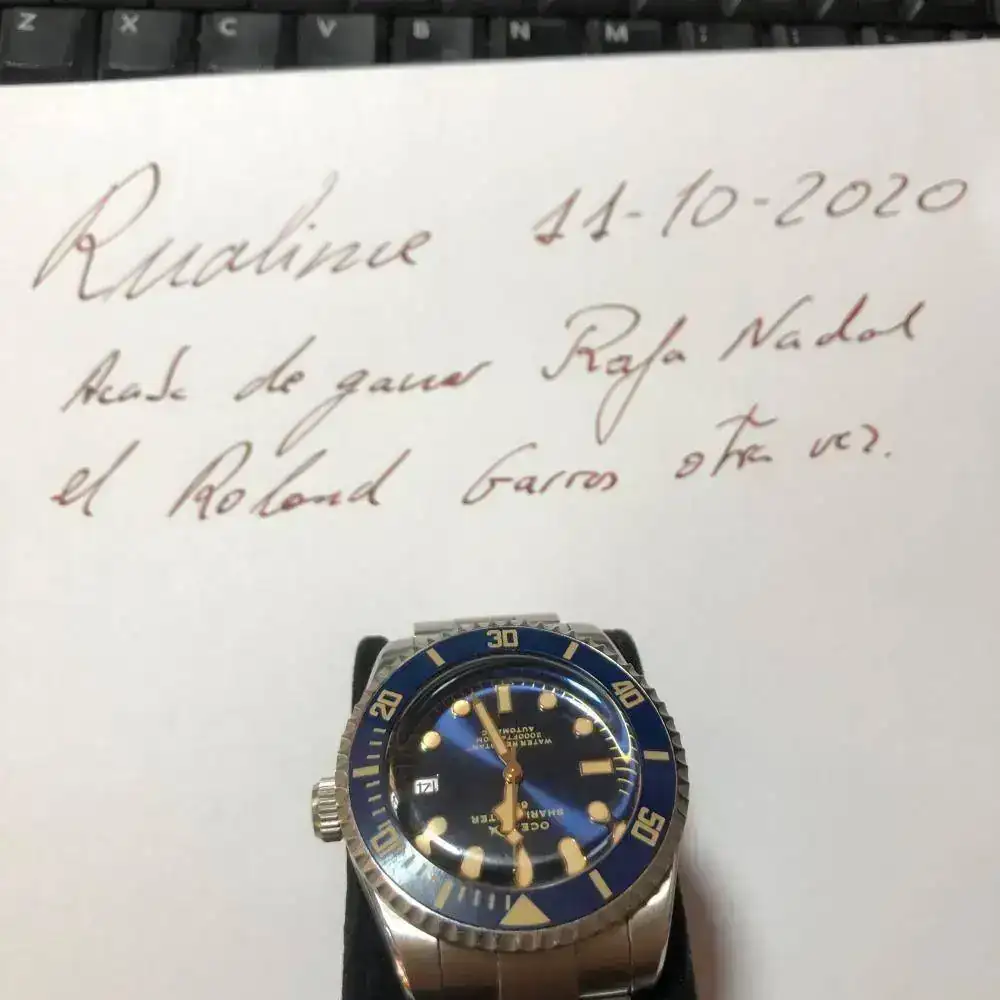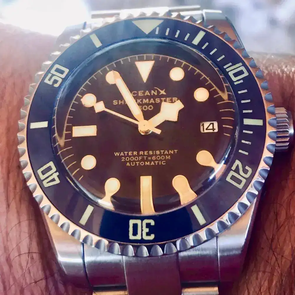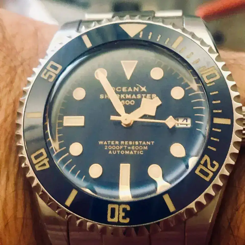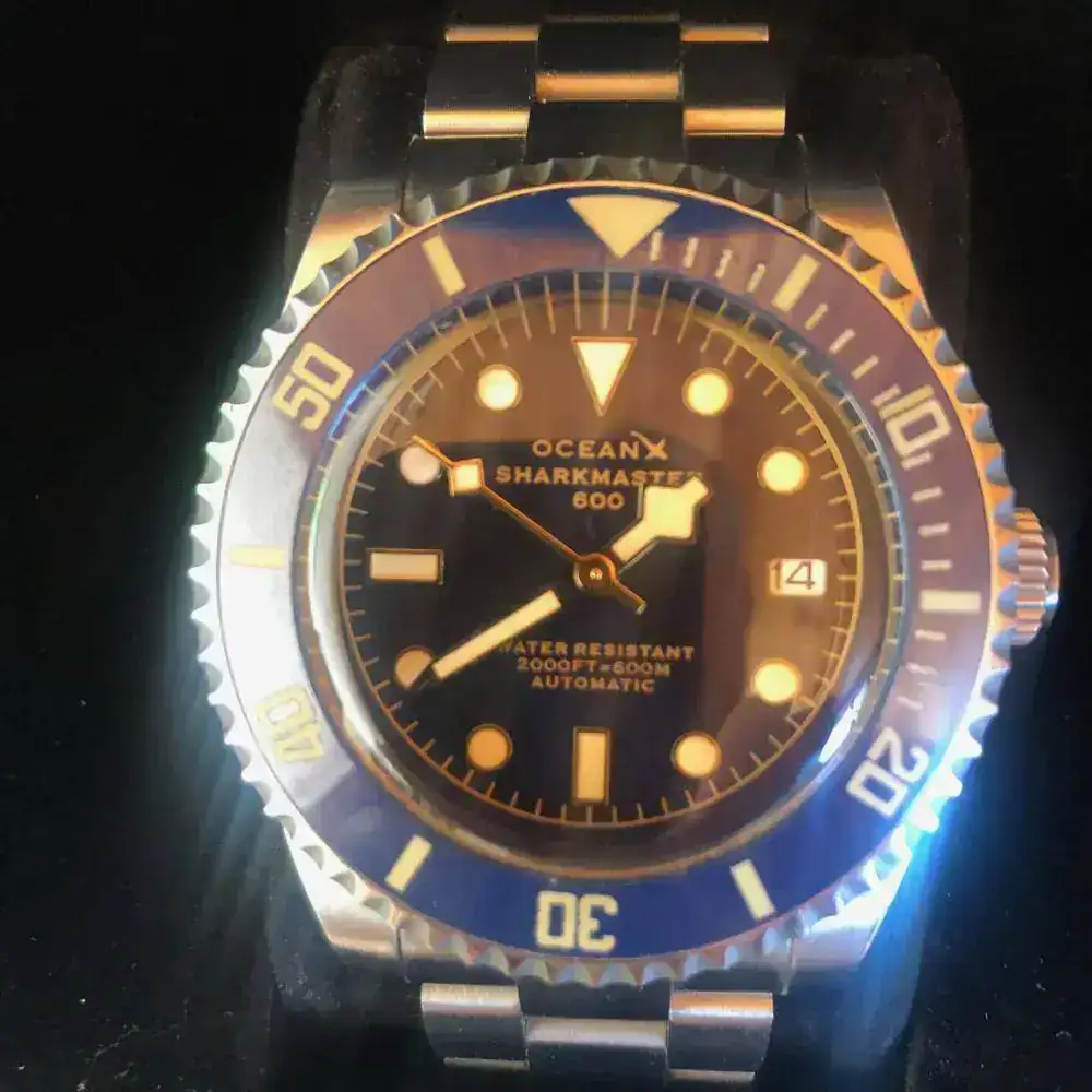 Esta vez os ofrezco un Ocean X Sharkmaster 600 sms624, un reloj que impresiona al natural más que en las fotos (y suele ser al revés). Funciona bien hasta donde yo sé, porque roto mucho los relojes y lo he usado muy pocas veces. No tiene ninguna marca significativa y solo algunos pelillos en el cierre como es habitual. Va a hacer dos años desde su compra nuevo. Tiene varios eslabones adicionales. Llama la atención porque es muy bonito y, si le tengo que poner un "pero", es que no es un reloj ligero y, al principio de llevarlo, se nota que lo llevas puesto (luego ya te acostumbras).