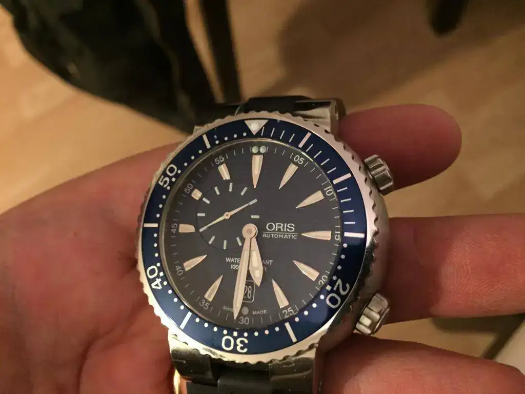 El reloj es comodísimo (podéis preguntar en el foro específico de Oris) Los 47 mms de caja no son tales a la vista, ya que la caja tiene forma cónica, por lo que a la altura del bisel es menor.