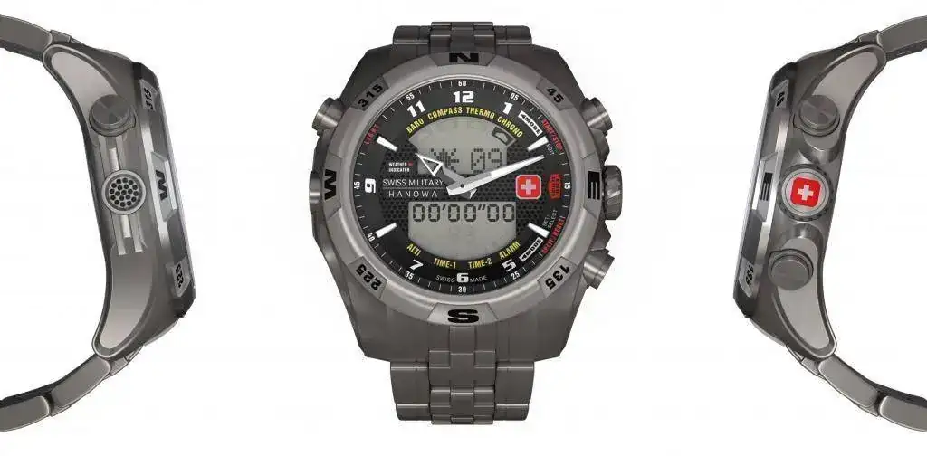 Funciones: Altímetro, barómetro, cronómetro, brújula/compás, termómetro, alarma y doble uso horario.