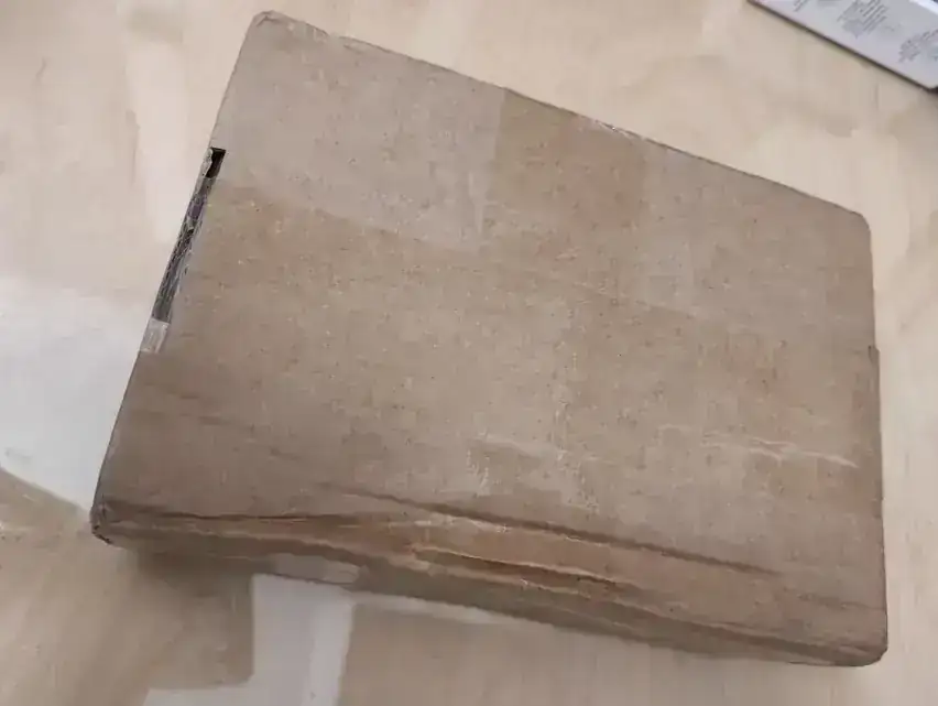 Caja de cartón mandada por ecocooting con posibilidad de recoger en establecimientos cercanos. Súper útil para currantes que no tenemos hora de estar en casa para recoger el paquete.