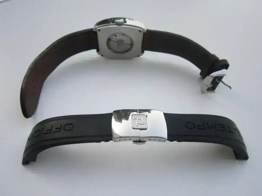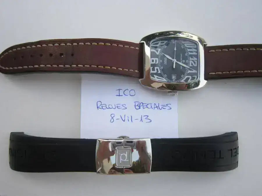 El reloj es automático y monta una MIYOTA de 21 rubies (reserva de marcha y demás ni idea) y se encuentra en buen estado, de hecho lo he usado bastante poco. Es sumergible 50 m e incluye una correa de piel hirsch a medio usar y la de caucho con cierre desplegable original, cortada para muñeca de 17 cm pero que llega hasta unos 19 cm con los ajustes del cierre.