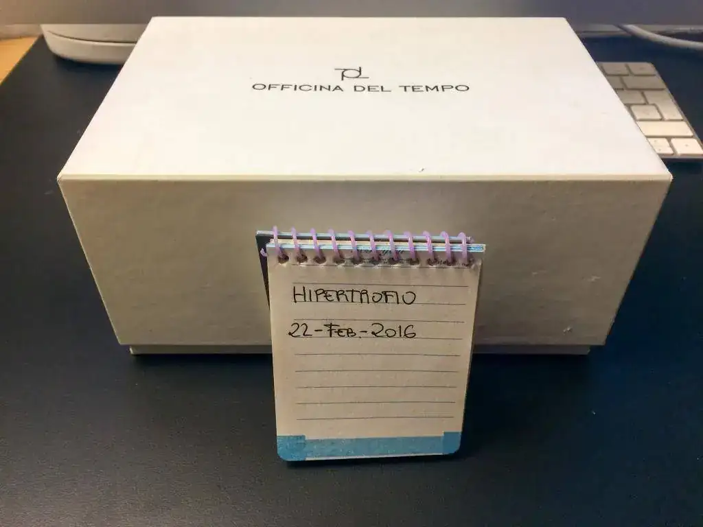 Lamentablemente no encuentro su manual ni su hoja de garantía. Tampoco tengo la almohadilla en la que montan el reloj, en cambio si tengo la caja de cartón exterior y una fantástica caja de madera lacada, digna de un reloj de mayores pretensiones.